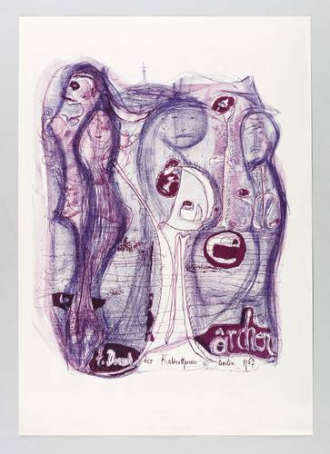 1967. Farblithografie / Kreide- & Pinsellithografie, in Violett & Rot, von 2 Steinen, auf leichtem Velin. – Originale Künstlergrafik, von Gerhard Altenbourg. – Probedruck 4 Exemplare. – 47,7 x 38,0 cm (Darstellung / Druckbild), 62 x 43 cm (Blatt).