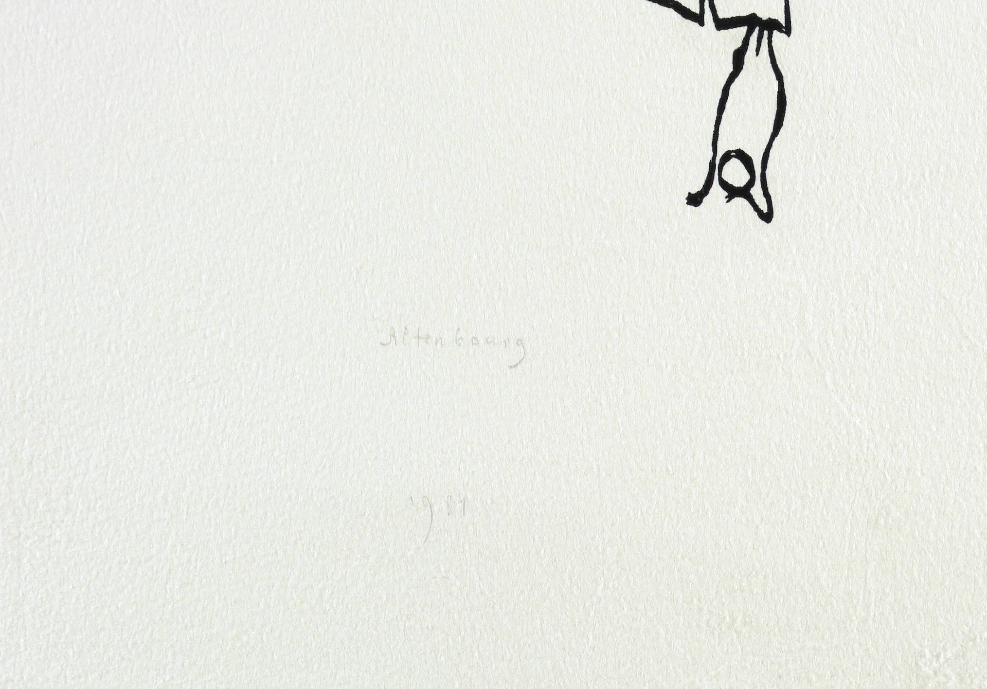 1981. Siebdruck / Serigrafie, in Schwarz, auf schwerem hellchamois Hahnemühle-Bütten. – Originale Künstlergrafik, von Gerhard Altenbourg. – Auflage Exemplar Nr. 25/25. – 59,0 x 29,9 cm (Darstellung / Druckbild), 80 x 54 cm (Blatt).