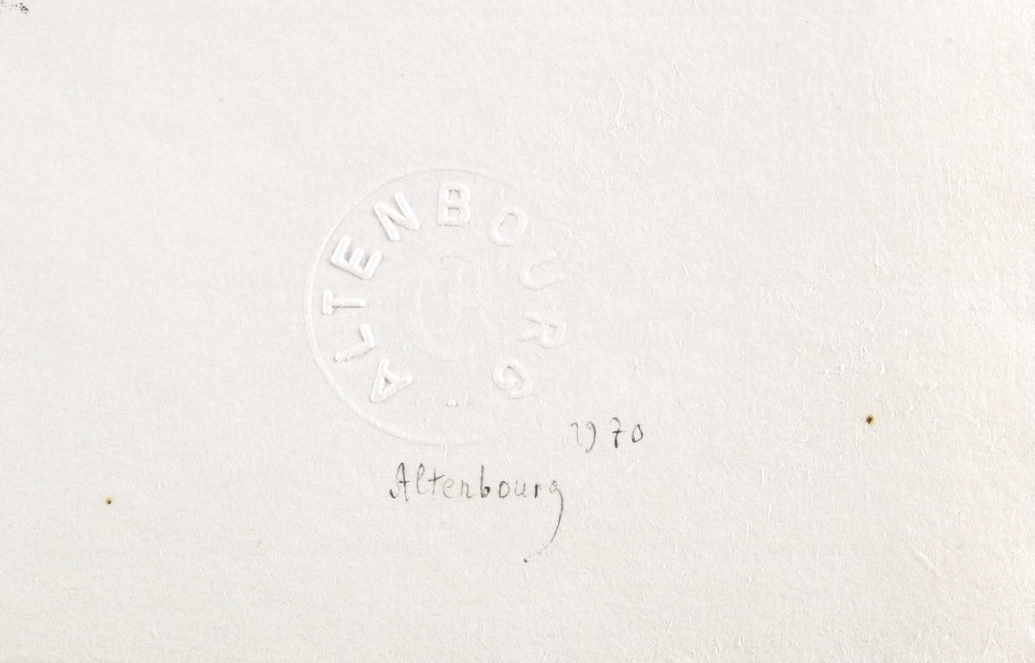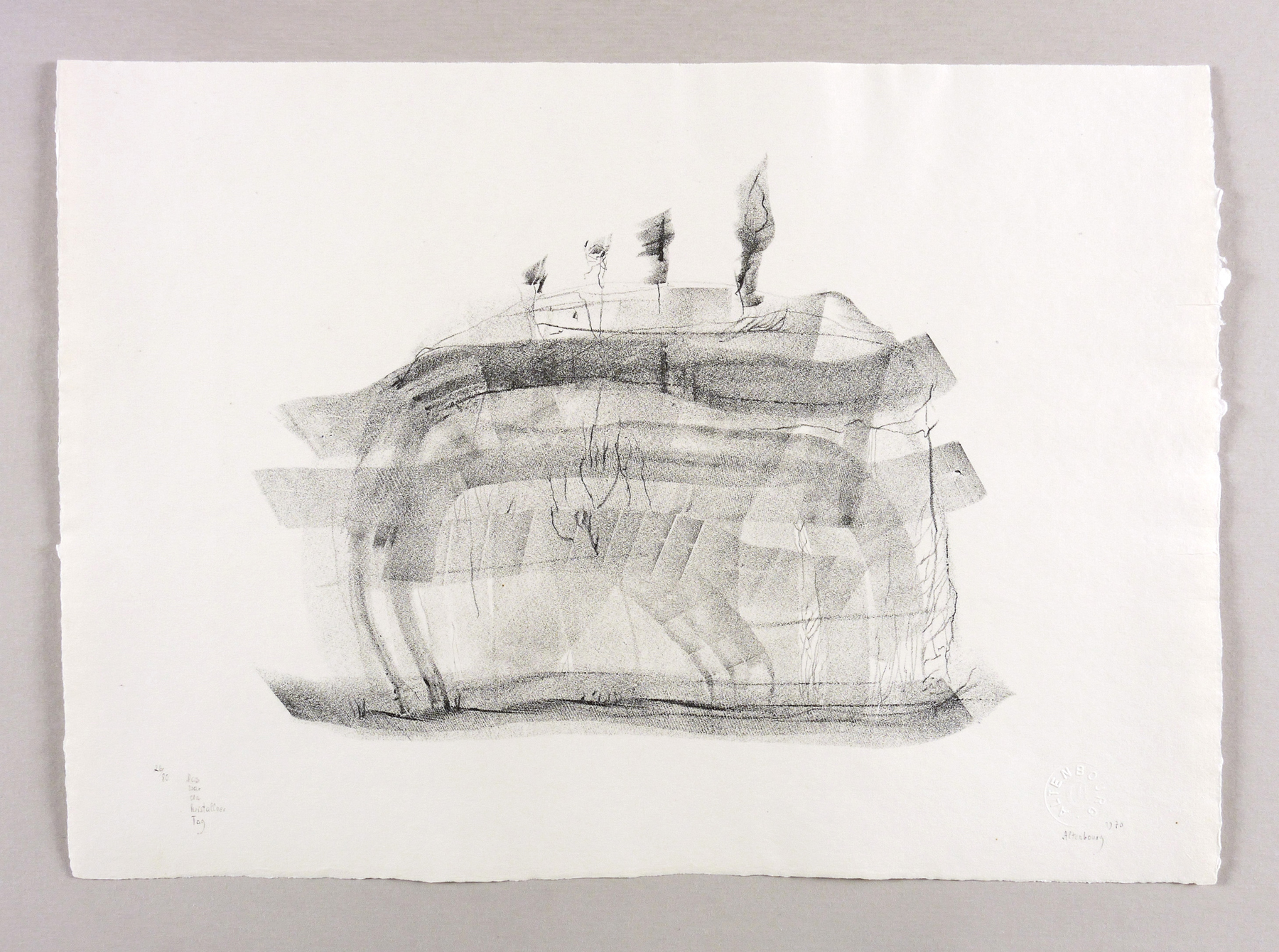 Janda L 141 I. – Rechts unten in schwarzer Feder datiert und signiert: ″1970 Altenbourg″. Dazu Trockenstempel des Künstlers. Links Auflagenbezeichnung und Titel. – Ohne Mängel. Sehr guter Zustand.