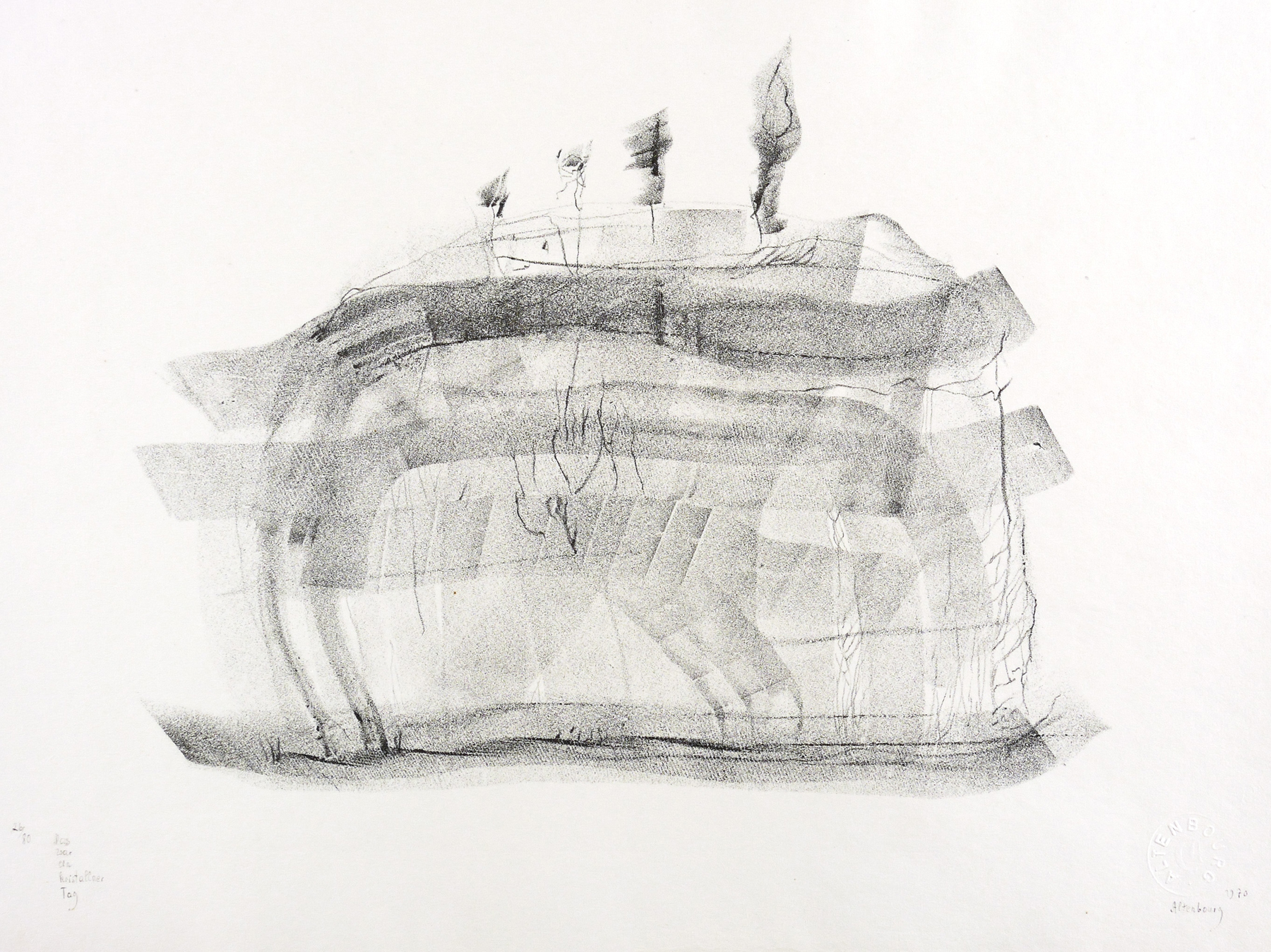 1970. Lithografie / Kreidelithografie, in Schwarz, auf feinem hellchamois Japanbütten. – Originale Künstlergrafik, von Gerhard Altenbourg. – Auflage Exemplar Nr. 26/80. – 30 x 42 cm (Blatt), 21,5 x 27,4 cm (Darstellung / Druckbild).