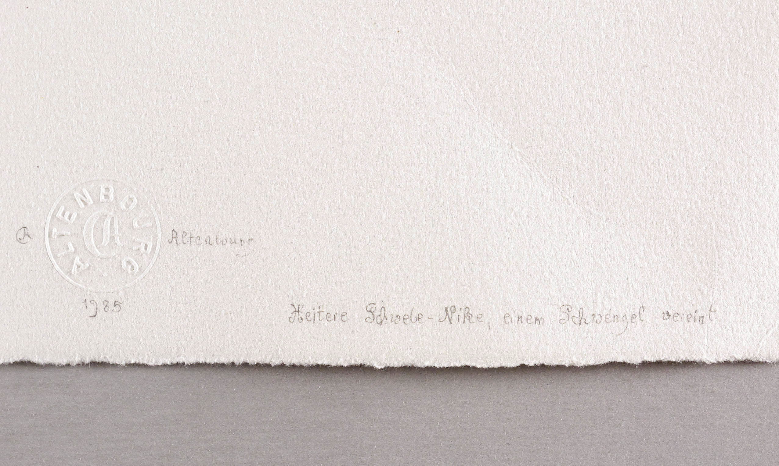 Altenbourg, Gerhard. – „Heitere Schwebe-Nike, einem Schwengel vereint”.