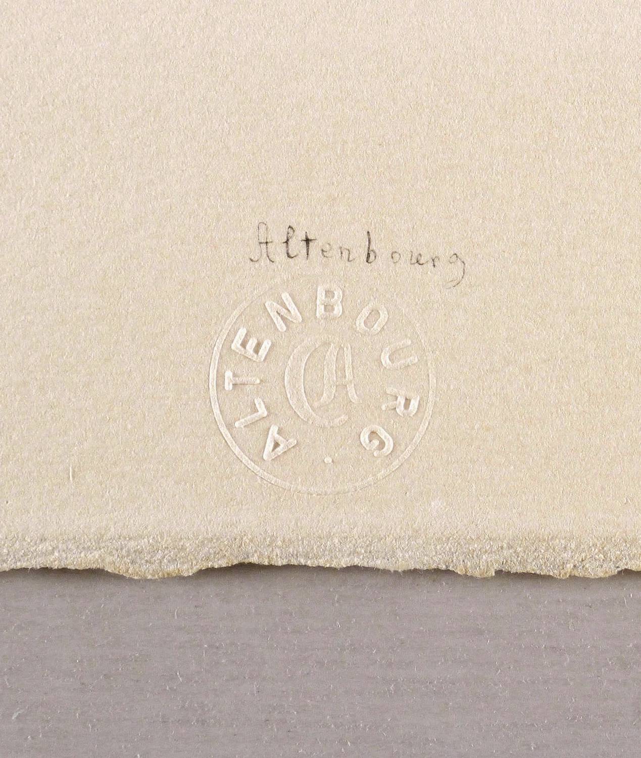 Gerhard Altenbourg (1926 Rödichen-Schnepfetal - 1989 Meißen). Deutscher Maler und Grafiker. 1929 Umzug nach Altenburg. 1944-45 Soldat im Zweiten Weltkrieg. 1946-48 als Schriftsteller und Journalist tätig, Zeichenunterricht bei Erich Dietz. 1948-50 Studium an der Hochschule für Baukunst und Bildende Kunst in Weimar bei Hans Hoffmann-Lederer. 1959 Teilnahme an der documenta II in Kassel. 1961 Gastatelier an der Kunstakademie in Westberlin. 1961 Erwerb einiger Arbeiten durch das Museum of Modern Art in New York. 1962-89 Atelier in Altenburg, Annahme des Künstlernamens "Altenbourg". 1966 Burda-Preis für Grafik in München. 1968 Will-Grohmann-Preis in Westberlin. 1970 Mitglied der Akademie der Künste, Berlin. 1977 Teilnahme an der documenta 6 und Mitgliedschaft bei der „Life Fellow of the International Biographical Association“ in Cambridge. In den 1980er Jahren Ausstellungsverbot und Schließung der Ausstellungen, da er sich den offiziellen Kunstauffassungen der DDR widersetzte. Seit 1998 vergibt das Lindenau-Museum in Altenburg aller zwei Jahre den Gerhard-Altenbourg-Preis.