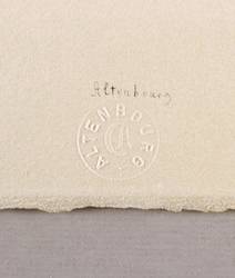Janda H 170 12 (von 14). – Unterhalb mittig in Feder und Tuschesigniert: ″Altenbourg″. Dazu Prägestempel des Künstlers. Links davon Titel: ″Ariadne″. In der linken unteren Blattecke eigenhändige Auflagenbezeichnung: ″5/14 Variante″. Rechts Jahr: ″1973″. Rechts oben über der Darstellung Typendruck: ″PP″. Wasserzeichen von Arches France. – Unikate Farbvariante. – Reichster und umfänglichster Zusammendruck von 7 auch einzeln abgezogenen Druckstöcken mit den Haupt-Motiven ″Mit Flügeln: Ariadne″ und ″Gierig witternd die Trauben″. – Ein unbestrittenes Hauptblatt des Künstlers. – Originalrandiges Exemplar. Die Blattkanten seitlich leicht gebräunt. Insgesamt sehr guter Erhaltungszustand.