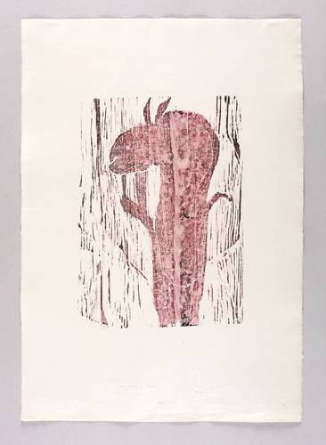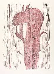 1973. Farbholzschnitt, in Hellrot & Schwarz, auf feinstem chamois Spechthausen. – Originale Künstlergrafik, von Gerhard Altenbourg. – Auflage Exemplar Nr. 3/4. – 34,1 x 24,4 cm (Darstellung / Druckstock), 60 x 42 cm (Blatt).