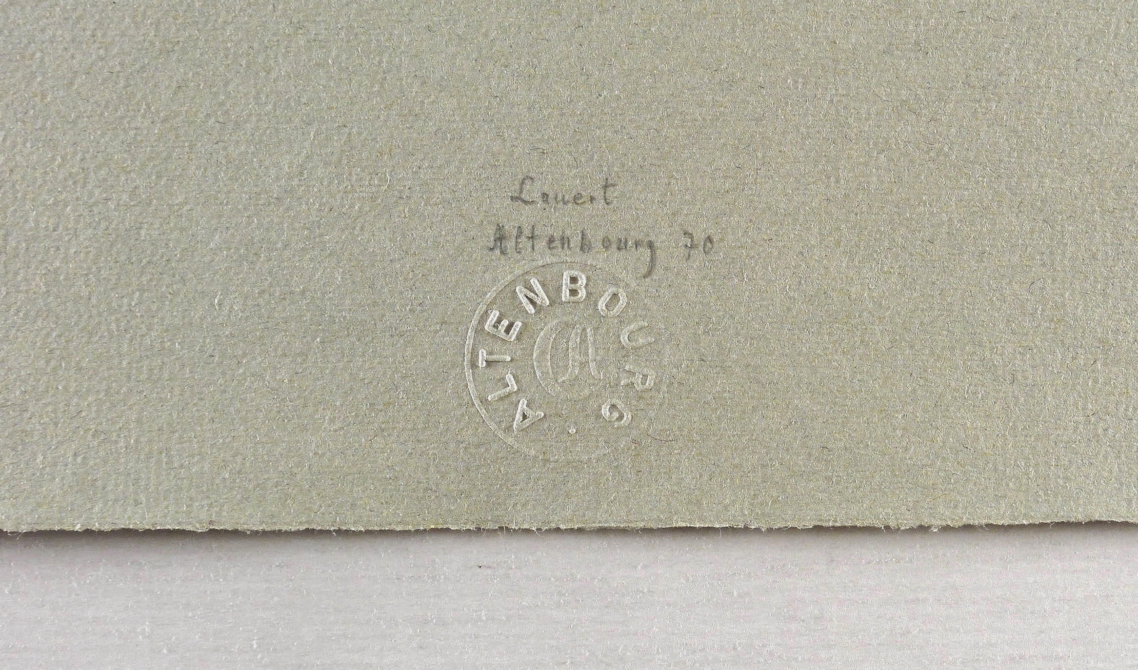 Janda H 144 10 b. – Unterhalb in grauer Tusche signiert und datiert: ″Altenbourg 70″. Darüber Titel: ″Lauert″. Darunter Prägestempel des Künstlers. In der linken unteren Blattecke Auflagenbezeichnung: ″2/2 auf grauem Grund″. Wasserzeichen der Hahnemühle. – Schönes unbeschnittenes Exemplar. Sehr guter Zustand.