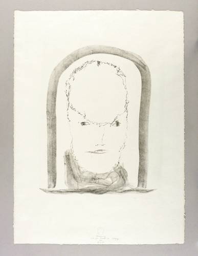 1977. Lithografie / Kreidelithografie, in Schwarz, auf hellgelbem Fabriano Roma. – Originale Künstlergrafik, von Gerhard Altenbourg. – Auflage Exemplar Nr. 30/50. – 42,6 x 33,9 cm (Darstellung / Druckbild), 67 x 50 cm (Blatt).