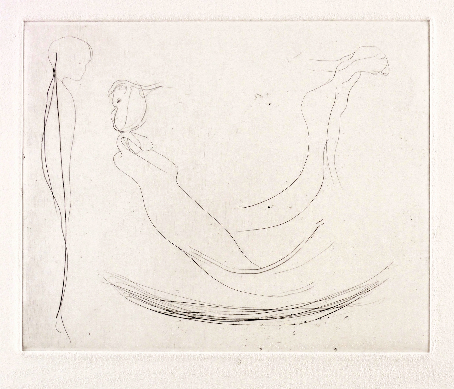1985. Radierung / Kaltnadel, in Schwarz, mit Plattenton, auf hellchamois Hahnemühle. – Originale Künstlergrafik, von Gerhard Altenbourg. – Probedruck Exemplar 2/2. – 20,0 x 24,7 cm (Darstellung / Platte), 39 x 54 cm (Blatt).