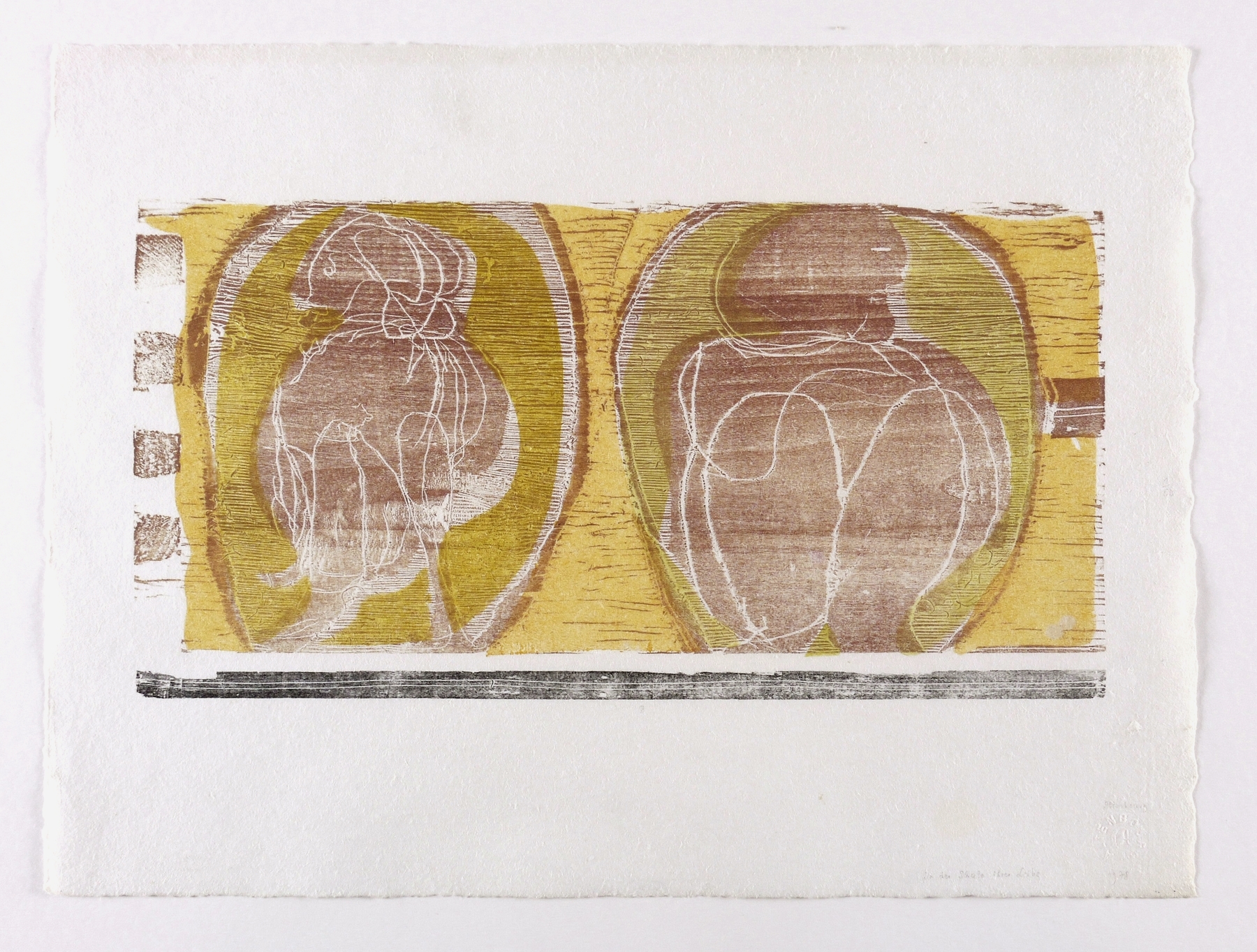 1978. Farbholzschnitt, von 4 Stöcken, auf rauem fasrigem Japan. – Originale Künstlergrafik, von Gerhard Altenbourg. – Auflage Exemplar Nr. 1/50. – 20,8 x 40,2 cm (Darstellung / Druckstock), 36 x 48 cm (Blatt).