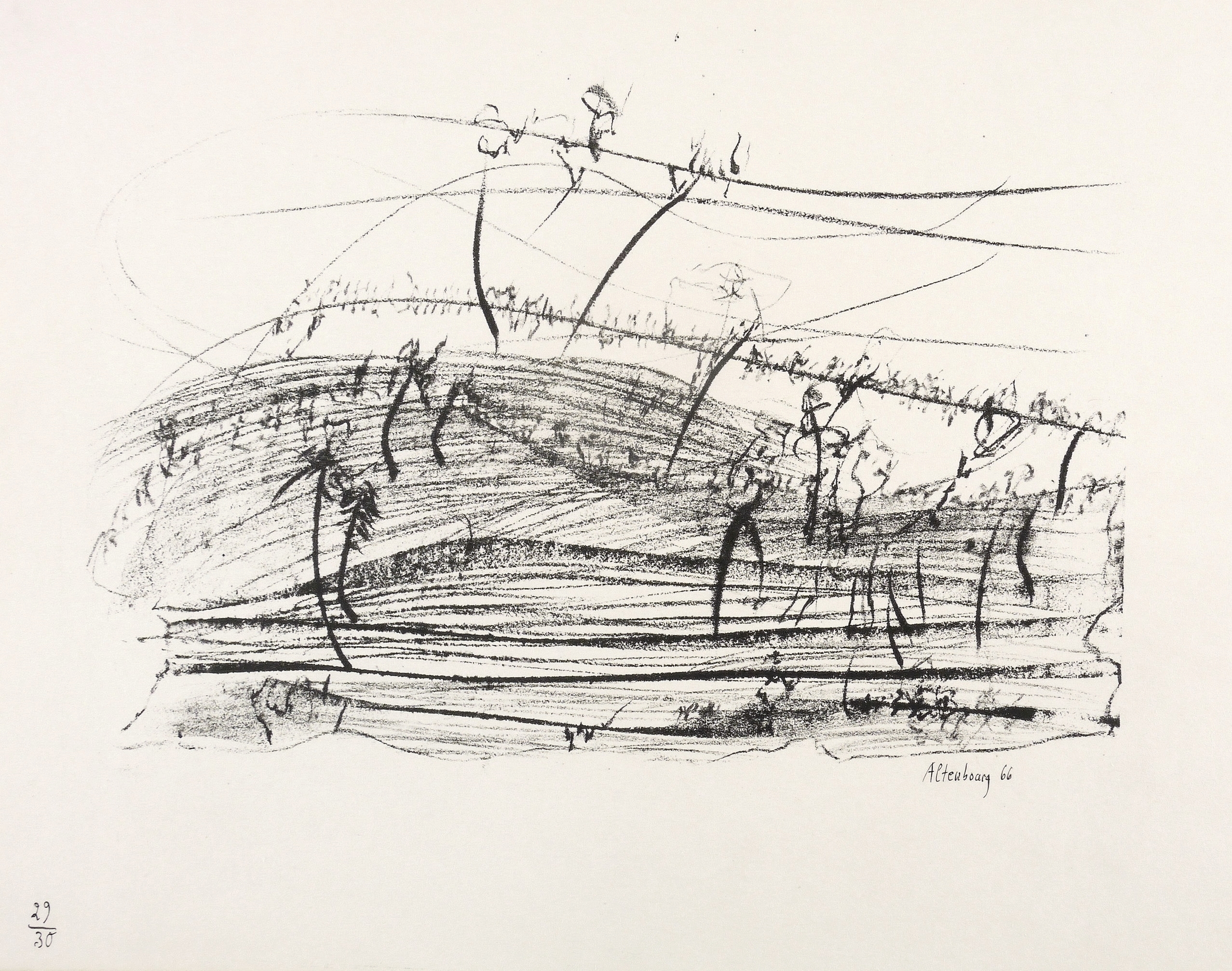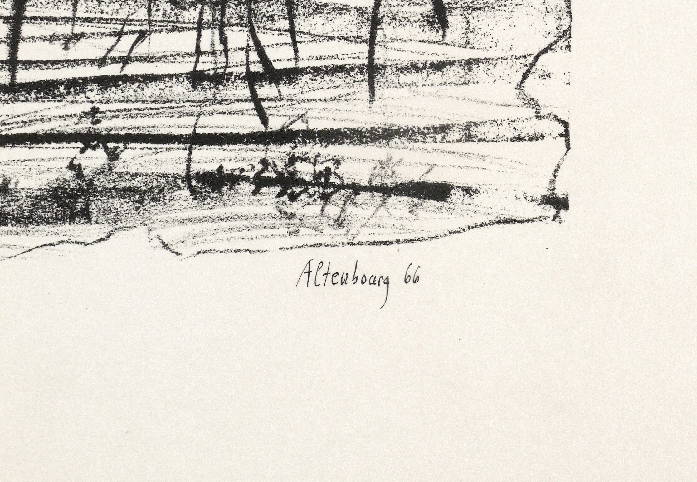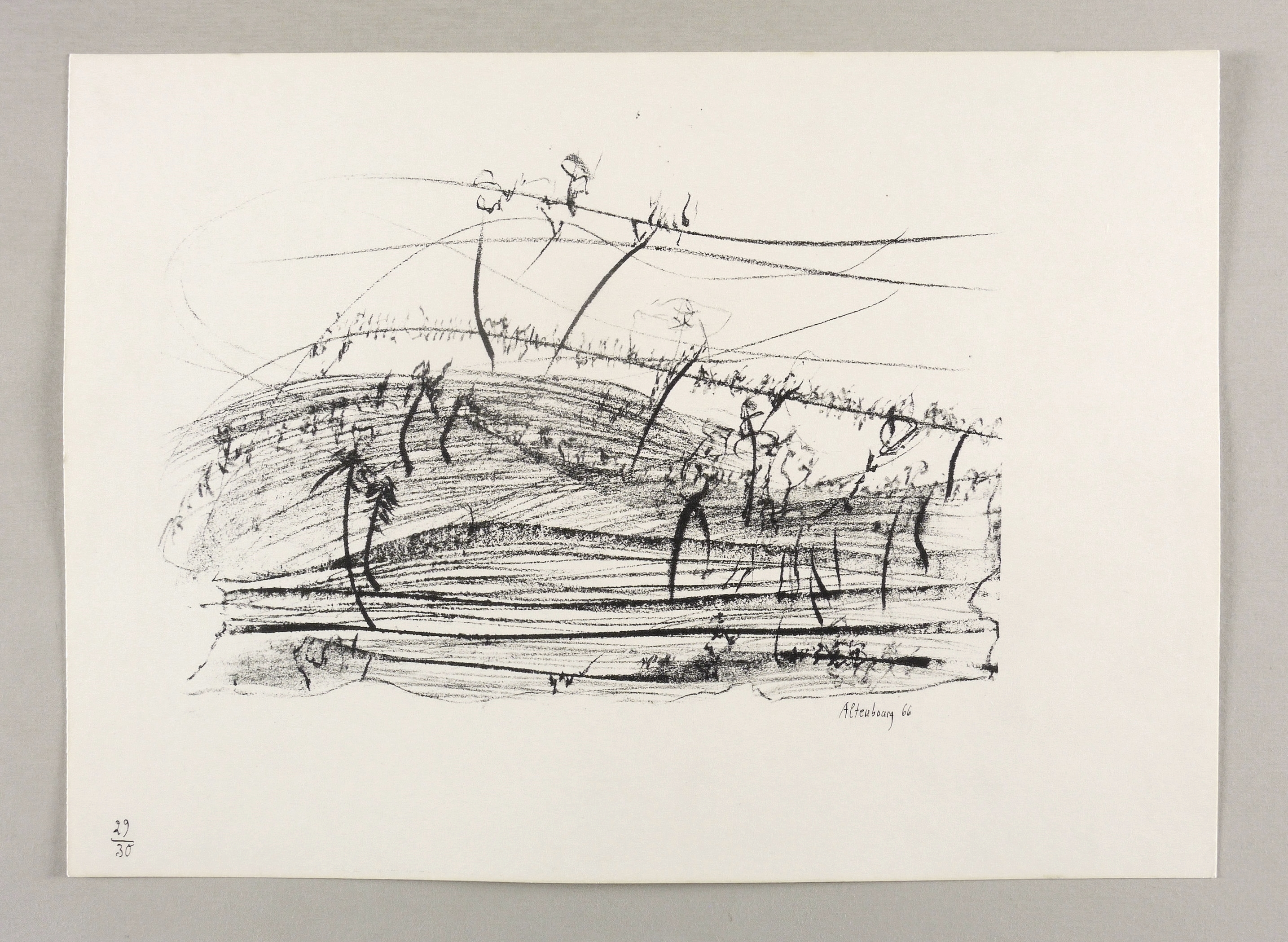 1966. Lithografie / Kreidelithografie, in Schwarz, auf hellchamois Velinkarton. – Originale Künstlergrafik, von Gerhard Altenbourg. – Auflage Exemplar Nr. 29/30. – 20,0 x 30,4 cm (Darstellung / Druckbild), 30 x 42 cm (Blatt).