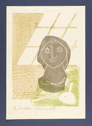 1972. Farbholzschnitt, Aquarellfarben in Grau, Ocker & Grün, auf Japanpapier. – Originale Künstlergrafik, von Walter Arnold. – 26,0 x 18,6 cm (Darstellung / Druckbild), 30 x 21 cm (Blatt), 31,5 x 22 cm (Trägerkarton).