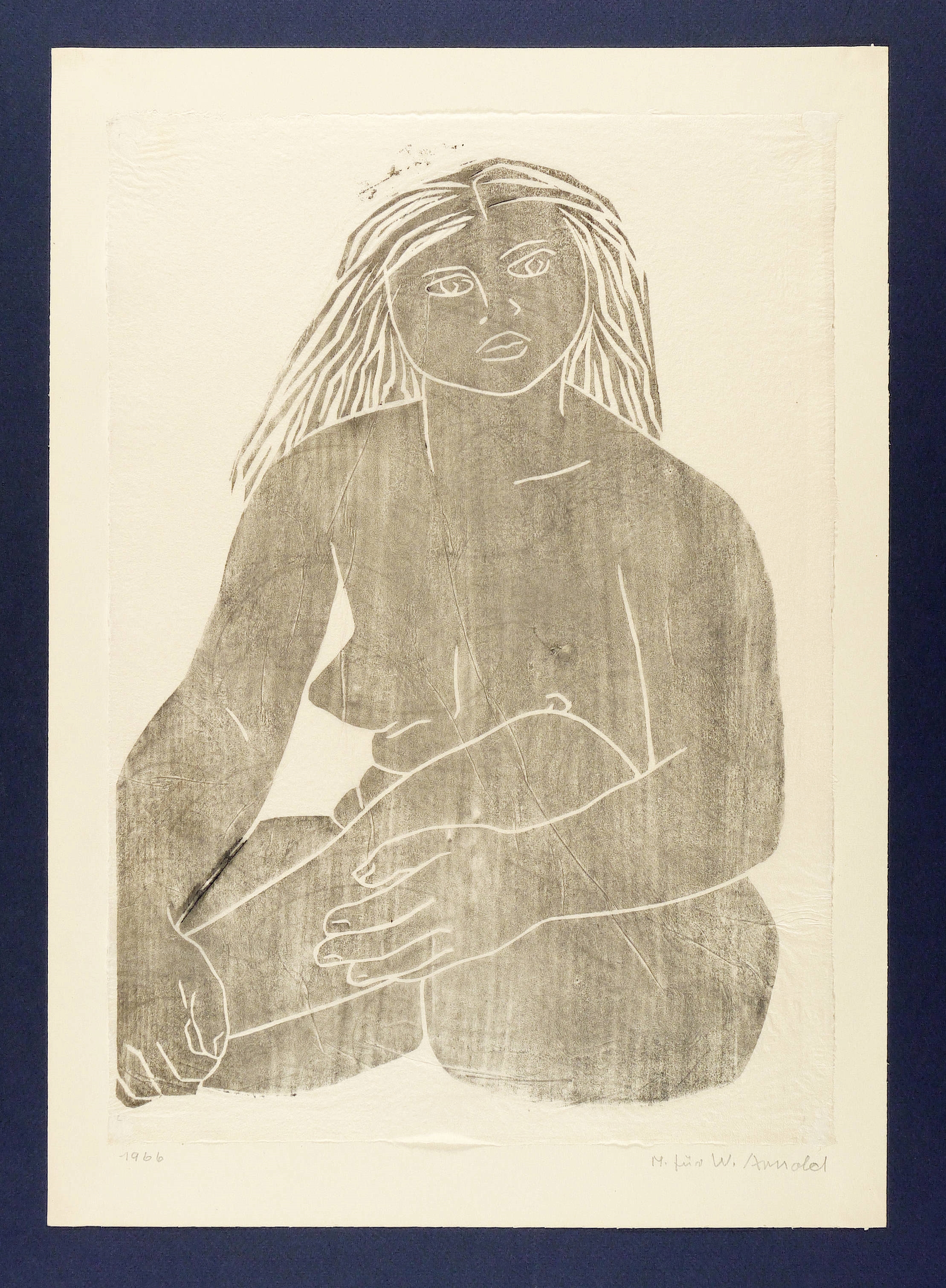 Heiland-Kukla 63. – Rechts unten Nachlass-Signatur von Maria Arnold. Links dazu datiert. – Vom Künstler original auf Trägerkarton gesetzt. Sehr gut erhalten.