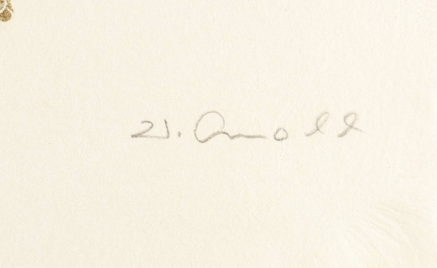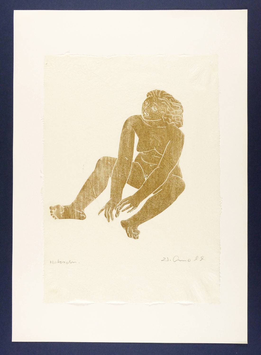 Nicht bei Heiland-Kukla. – Rechts unten in Bleistift signiert. – Reduzierte Variante vn dem Holzschnitt ″Mädchen mit Muschel″ von 1965 (WVZ Heiland/Kukla Nr. 50). – Vom Künstler original auf Trägerkarton gesetzt. Kleinere Fehlstelle in der rechten oberen Ecke. Sonst guter Zustand.