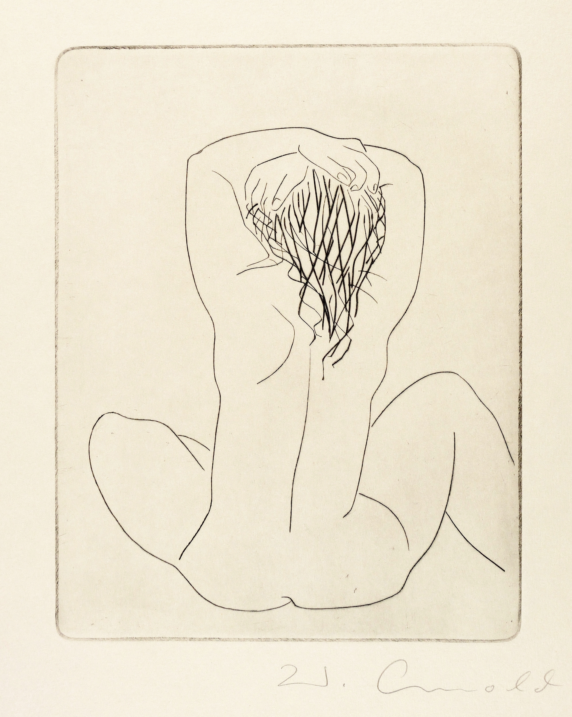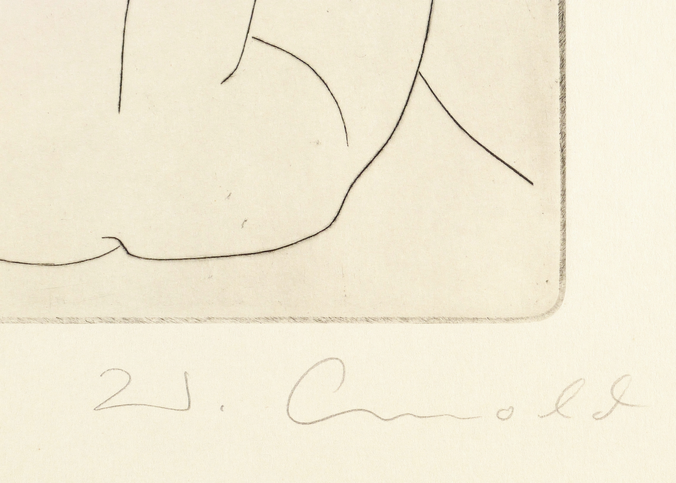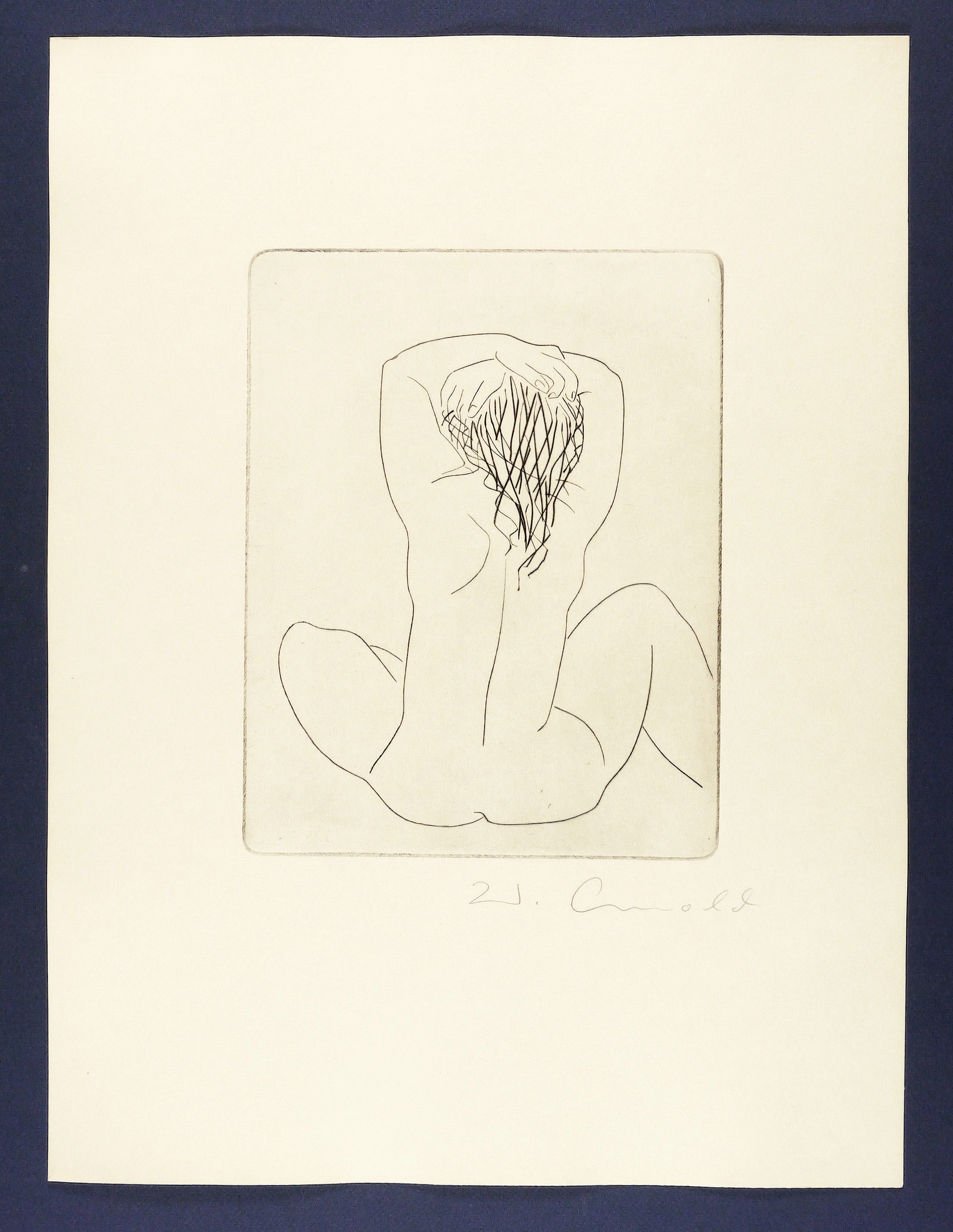 1966. Radierung / Kaltnadel, in Schwarz, auf chamoisfarbenem Maschinenpapier. – Originale Künstlergrafik, von Walter Arnold. – 26,6 x 20,8 cm (Darstellung / Platte), 51 x 38 cm (Blatt).