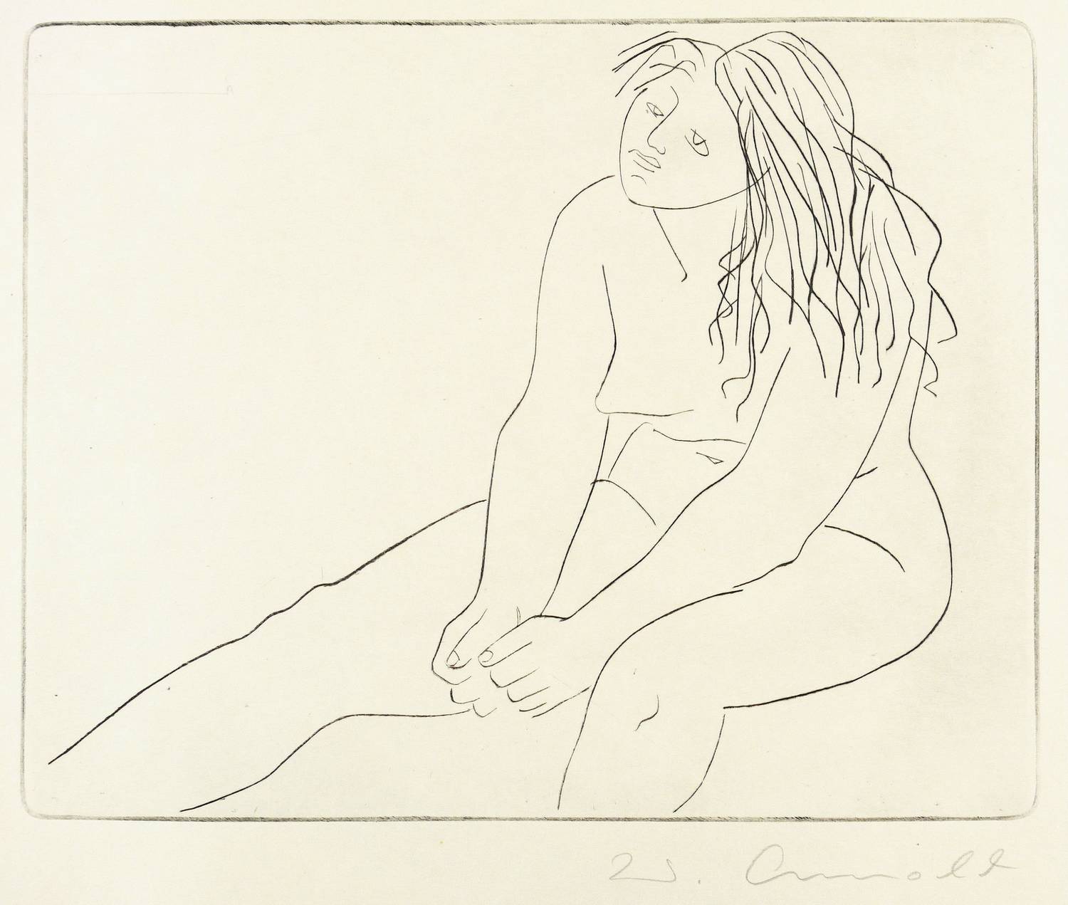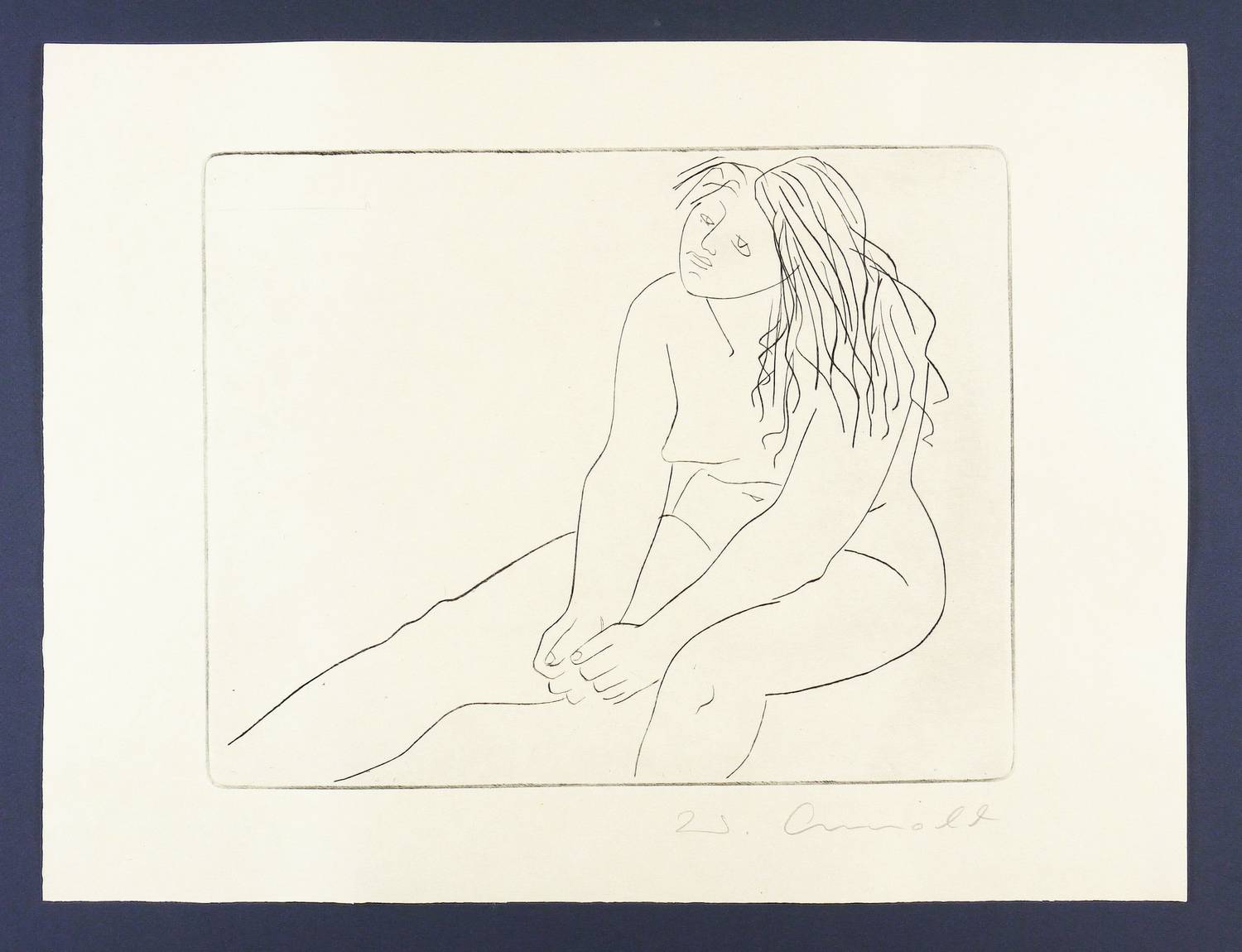 1965. Radierung / Kaltnadel, in Schwarz, auf hellem Tiefdruckkarton. – Originale Künstlergrafik, von Walter Arnold. – 28,0 x 35,5 cm (Darstellung / Platte), 38 x 50 cm (Blatt).