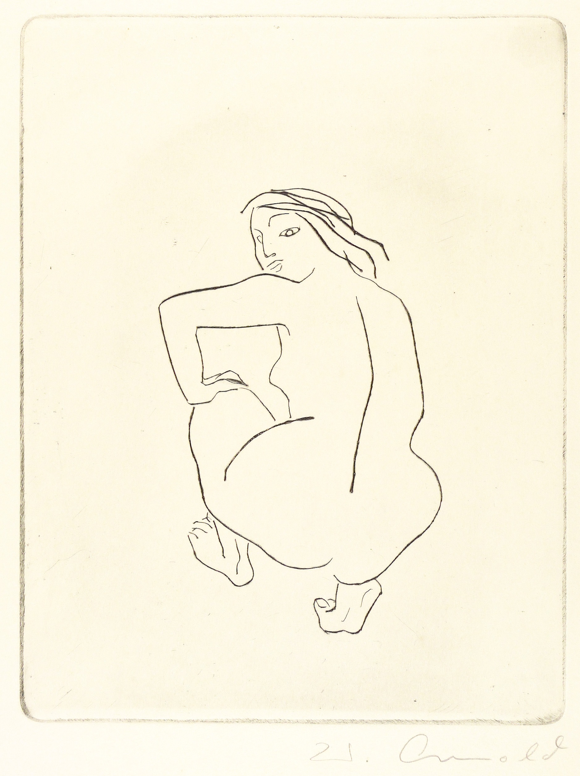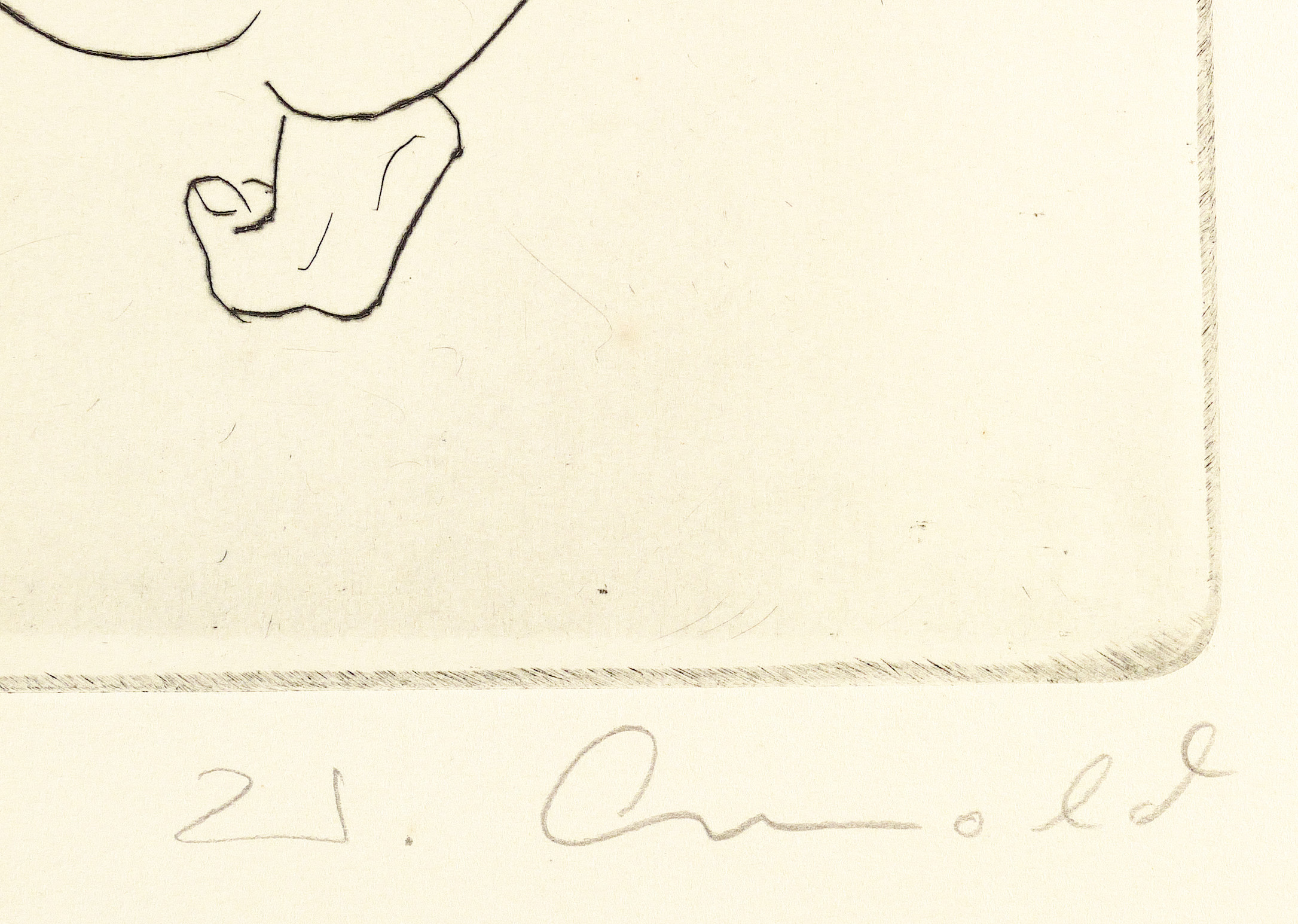1967. Radierung / Kaltnadel, in Schwarz, auf chamoisfarbenem Tiefdruckkarton. – Originale Künstlergrafik, von Walter Arnold. – 32,0 x 24,7 cm (Darstellung / Platte), 50 x 38 cm (Blatt).