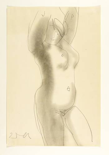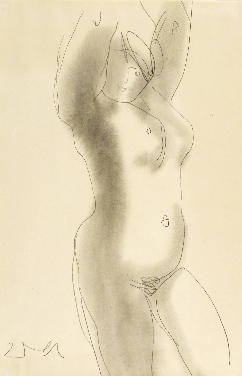 1965-1970. Zeichnung / Bleistiftzeichnung, mit Tusche in Grau laviert, auf hellgelbem Velin. – Originale Künstlergrafik, von Walter Arnold. – Unikat. – 40,0 x 27,0 cm (Darstellung / Blatt).