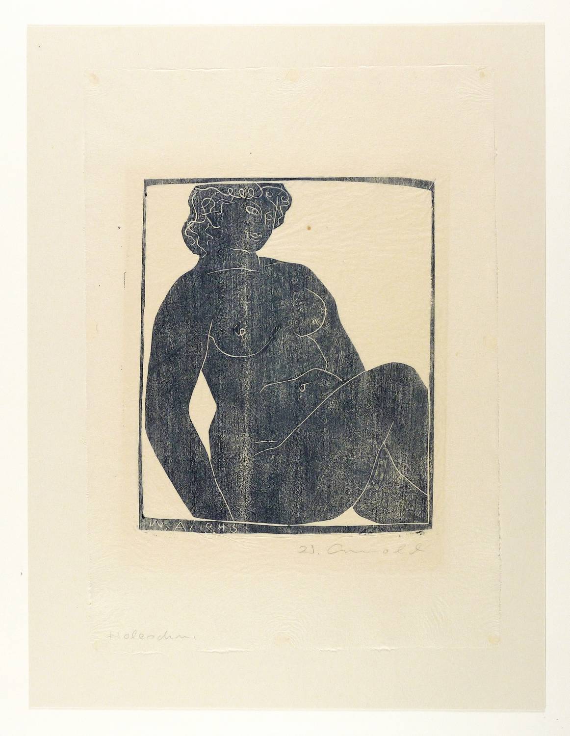 Heiland-Kukla 2. – Rechts unten in Bleistift signiert. Im Druckstock im Rahmen links unten Signatur und Jahr: ″W.A. 1943″. – Vom Künstler original auf Trägerkarton gesetzt. Papier mit kaum merklichem Lichtrand. Insgesamt gut erhalten.