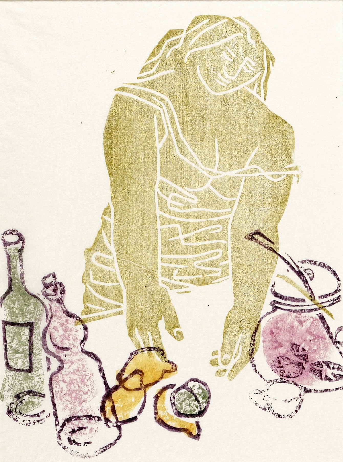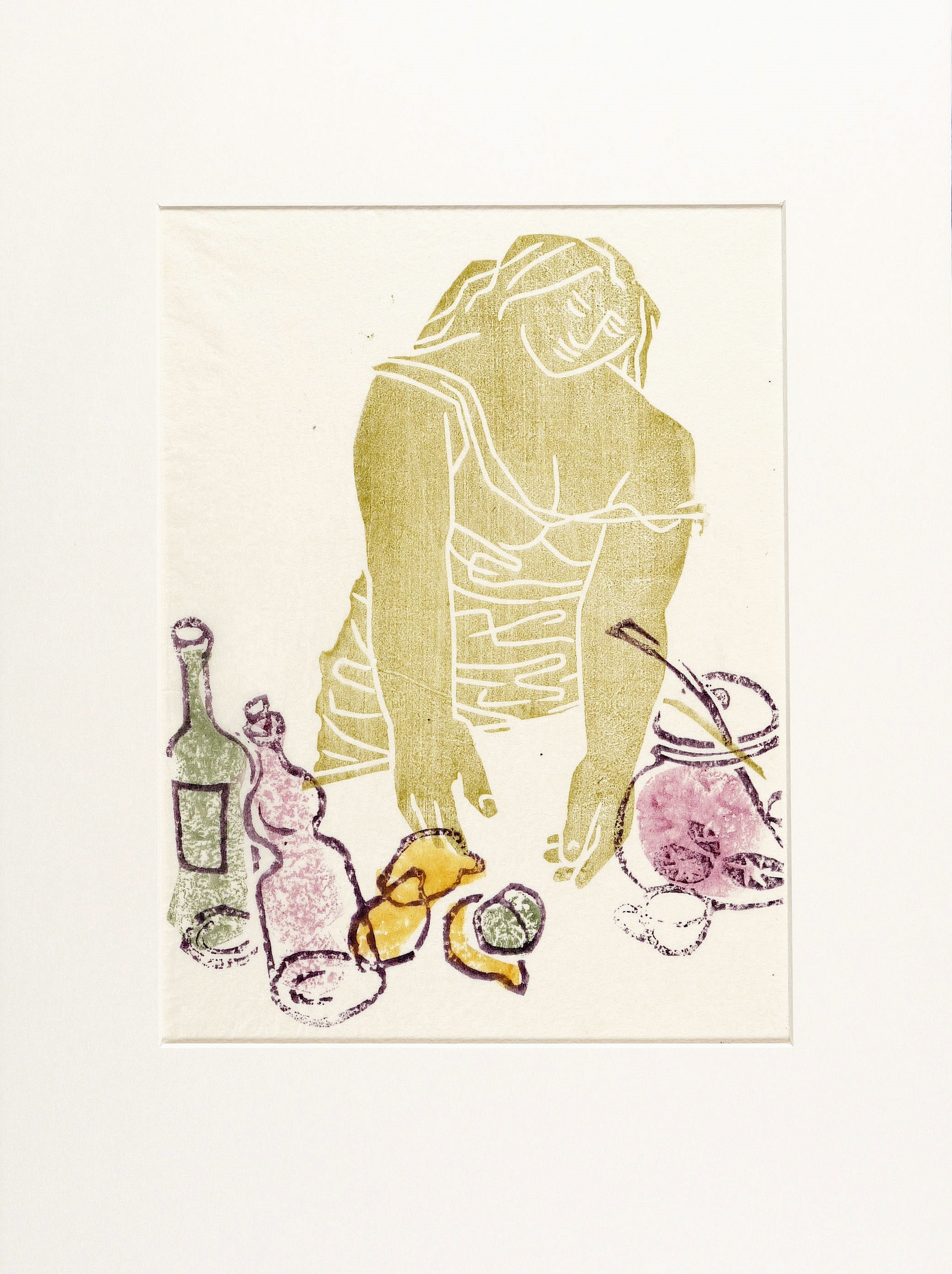 1978. Farbholzschnitt, Aquarellfarbe in 5 Farben, auf Japanpapier. – Originale Künstlergrafik, von Walter Arnold. – 25,5 x 20,0 cm (Darstellung / Druckstock), 30 x 21 cm (Blatt), 40 x 30 cm (Passepartout).