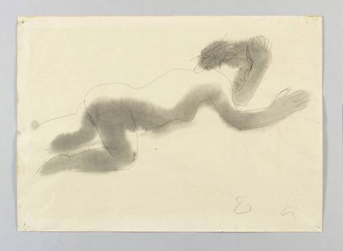 Arnold, Walter. – „Liegender Akt mit angezogenem Knie”.