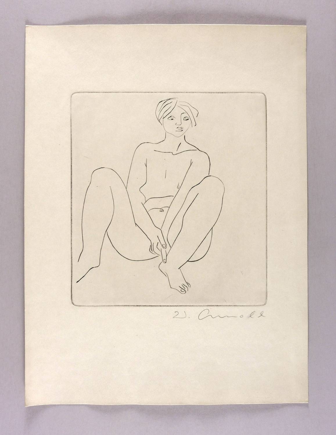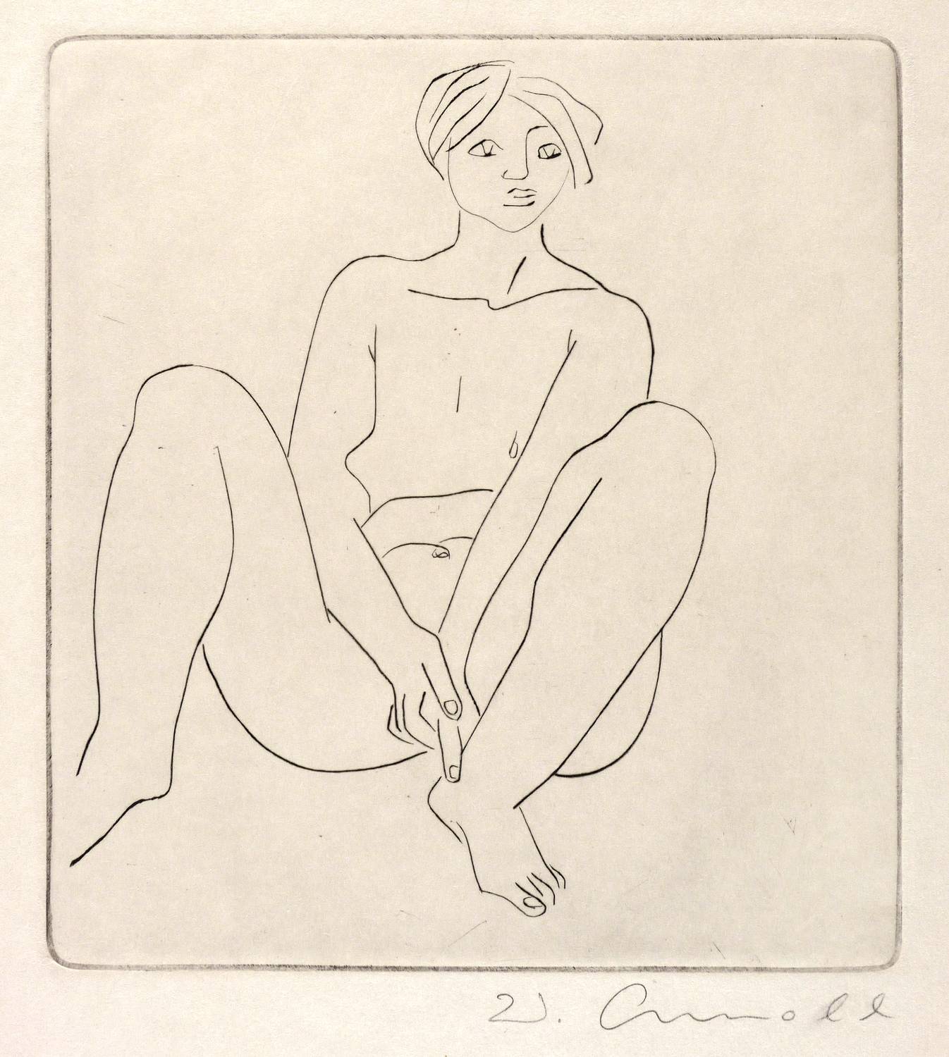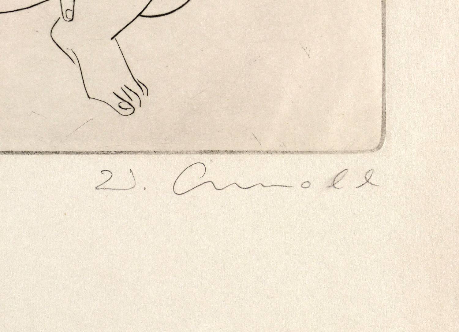1966. Radierung / Strichätzung, in Schwarz, auf gelbem Velinkarton. – Originale Künstlergrafik, von Walter Arnold. – 28,5 x 26,2 cm (Darstellung / Platte), 51 x 38 cm (Blatt).