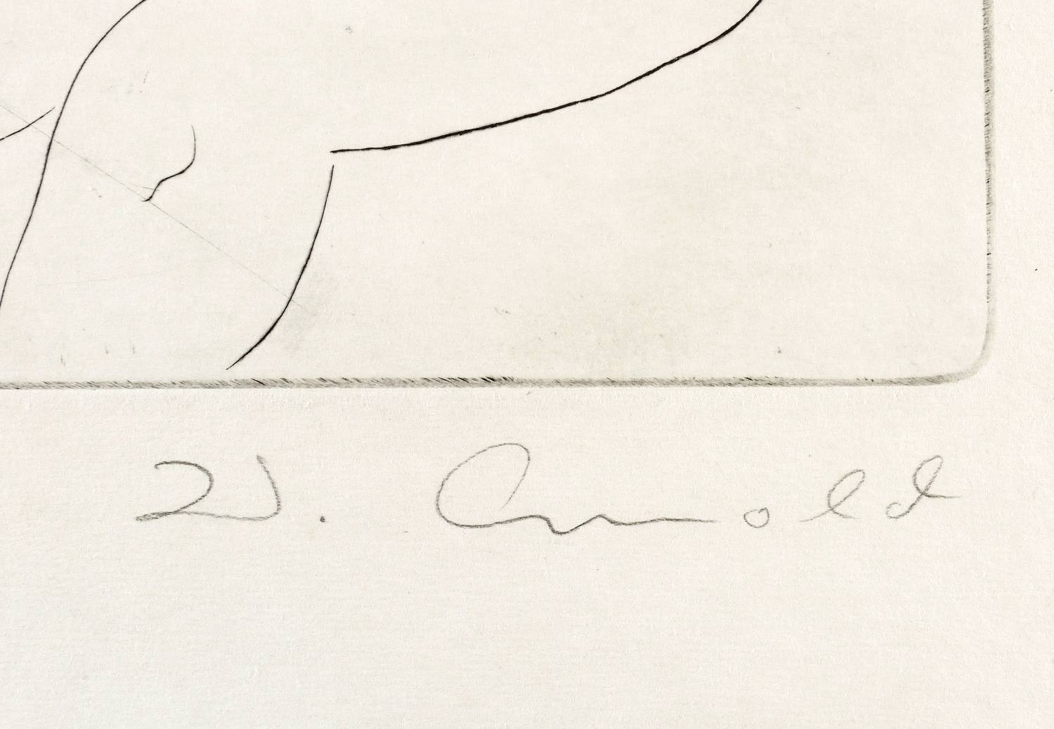 1965. Radierung / Kaltnadel, in Schwarz, auf hellchamois Velinkarton. – Originale Künstlergrafik, von Walter Arnold. – 27,7 x 35,5 cm (Darstellung / Platte), 38 x 50 cm (Blatt).