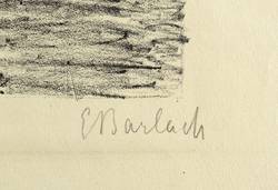 Laur 54.30. Schult 141. – Aus: Ernst Barlach, Der arme Vetter (Berlin: Paul Cassirer 1919). – Rechts unten in Bleistift signiert: ″EBarlach″. – Handsignierter Druck aus der Vorzugsausgabe (A2), die im Jahr 1919 in 80 Exemplaren erschien. – Tadellos erhalten. Sehr guter Zustand.