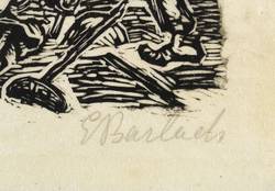 Laur 70.09. Schult 179. – Aus: Ernst Barlach, Der Findling. Mit 20 Holzschnitten von Ernst Barlach (Berlin: Paul Cassirer 1922). – Rechts unten in Bleistift signiert: ″EBarlach″. – Sehr guter Zustand.