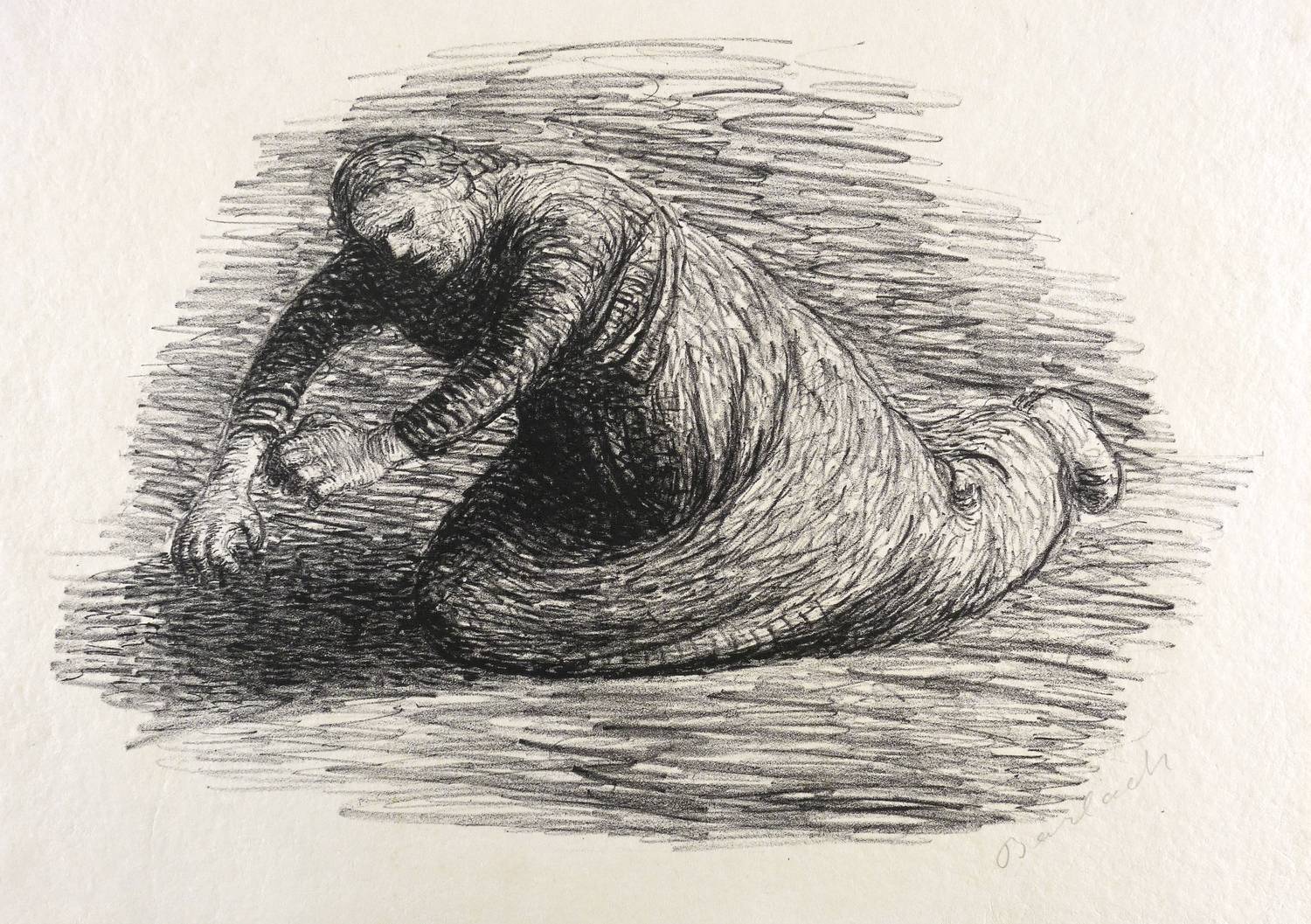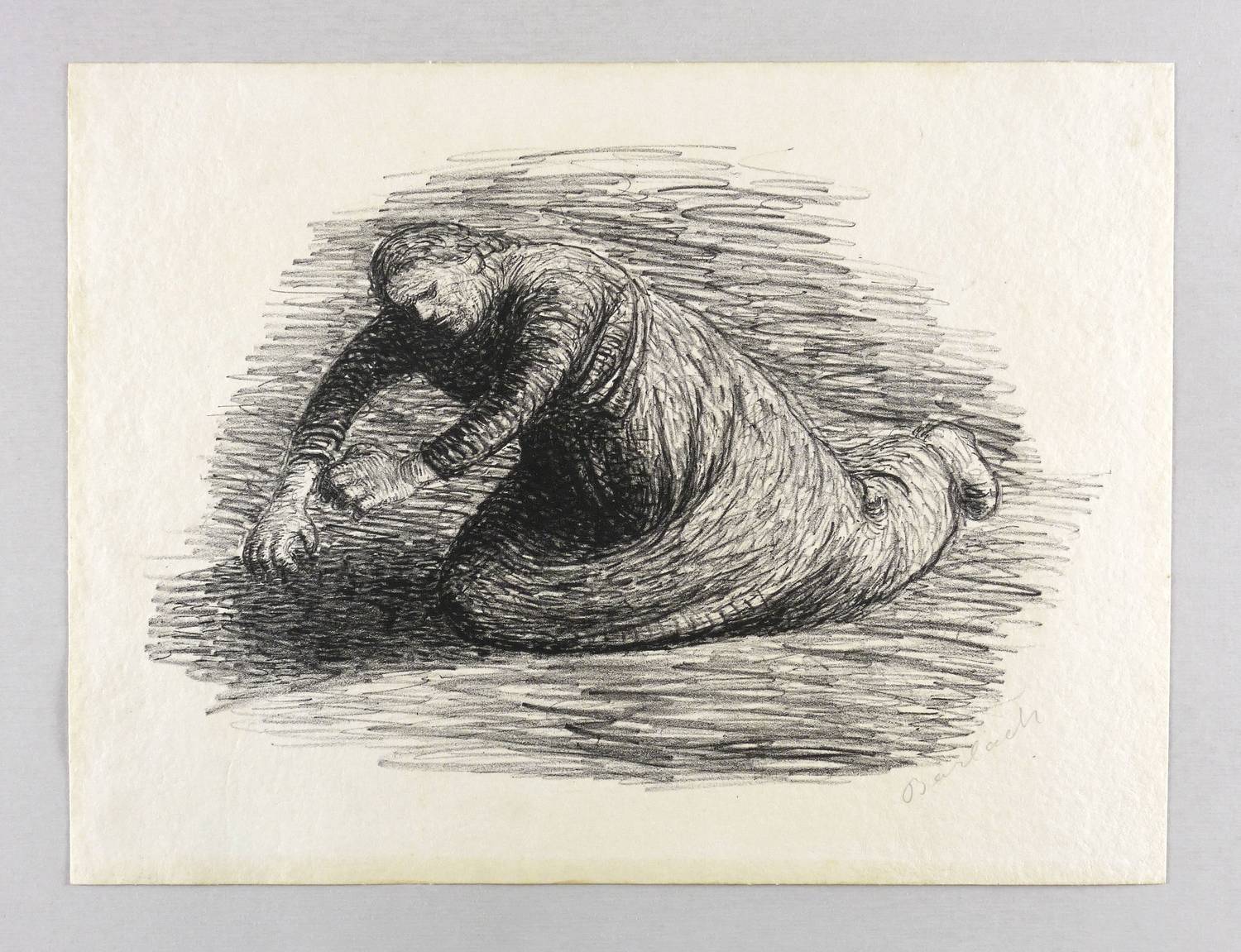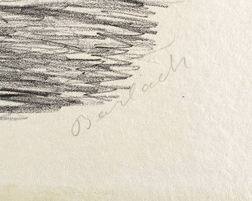 Laur 9.18. Schult 33. – Aus: Ernst Barlach, Der tote Tag. X. Werk der Pan-Presse (Berlin: Paul Cassirer 1912). – Rechts unten in Bleistift signiert: ″Barlach″. Verso Sammlungs-Stempel Kunsthalle Bremen, dazu Tilgungs-Stempel als Dublette. – Wohl Einblattdruck. – Provenienz: Grafische Sammlung, Kunsthalle Bremen. – Wohl beschnittenes Exemplar. Schwach ausgeprägte Rahmungsspuren im äußeren Rand. Guter Zustand.