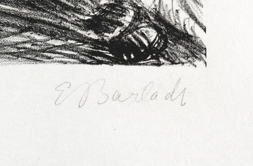 Laur 45. Schult 94. – Rechts unten in Bleistift signiert: ″EBarlach″. Links Auflagenbezeichnung: ″49/50″. Wasserzeichen der Papiermühle. – Tadelloses Exemplar. Sehr guter Zustand.