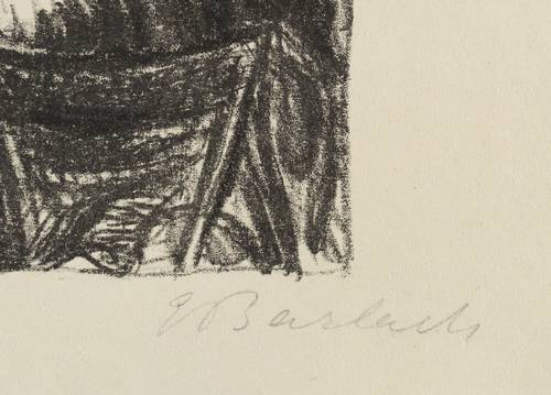 1919. Lithografie / Kreidelithografie, in Schwarz, auf festem gelblichem Velin. – Originale Künstlergrafik, von Ernst Barlach. – Auflage Exemplar Nr. 5/80. – 27,0 x 35,0 cm (Darstellung / Druckbild), 34 x 48 cm (Blatt).