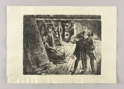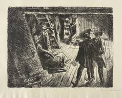 Laur 54.22 A 1. Schult 133. – Aus: Ernst Barlach, Der arme Vetter (Berlin: Paul Cassirer 1919). – Rechts unten in Bleistift signiert: ″E Barlach″. Links Auflagenbezeichnung: ″5/16″. – Blatt Nr. 17 aus dem Lithografie-Zyklus ″Der arme Vetter″ von 1919. – Handsignierter und nummerierter Druck der ersten durchnummerierten Ausgabe von 80 Exemplaren. – Dargestellte Szene: Iver im Lehnstuhl am Schornstein einer Dachkammer der Gastwirtschaft sitzend, die anderen Gäste um ihn herum. – Blattkanten oben und unten minimal gewellt. Insgesamt sehr guter Zustand.