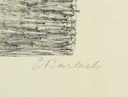 1919. Lithografie / Kreidelithografie, in Schwarz, auf festem gelblichem Velin. – Originale Künstlergrafik, von Ernst Barlach. – Auflage Exemplar Nr. 5/80. – 26,5 x 35,0 cm (Darstellung / Druckbild), 34 x 48 cm (Blatt).
