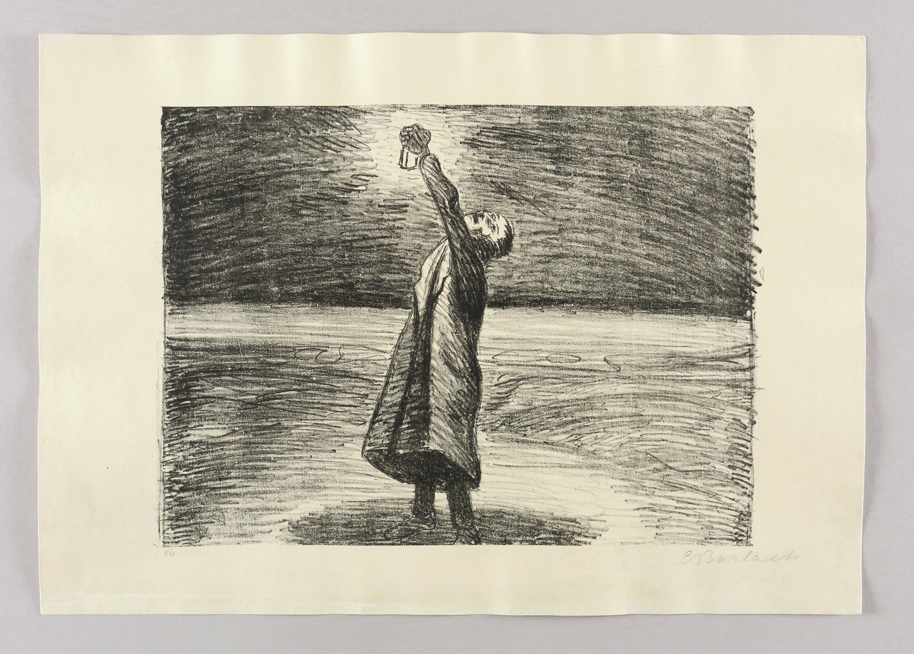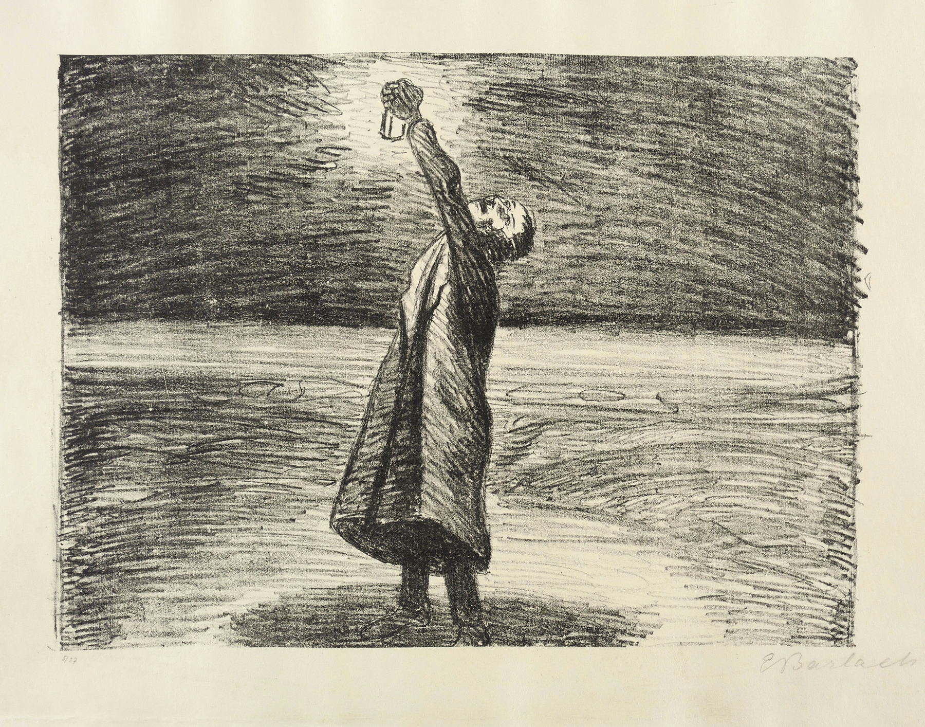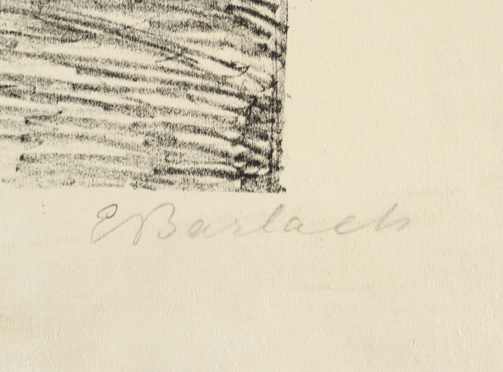1919. Lithografie / Kreidelithografie, in Schwarz, auf festem gelblichem Velin. – Originale Künstlergrafik, von Ernst Barlach. – Auflage Exemplar Nr. 5/80. – 25,7 x 35,3 cm (Darstellung / Druckbild), 34 x 48 cm (Blatt).
