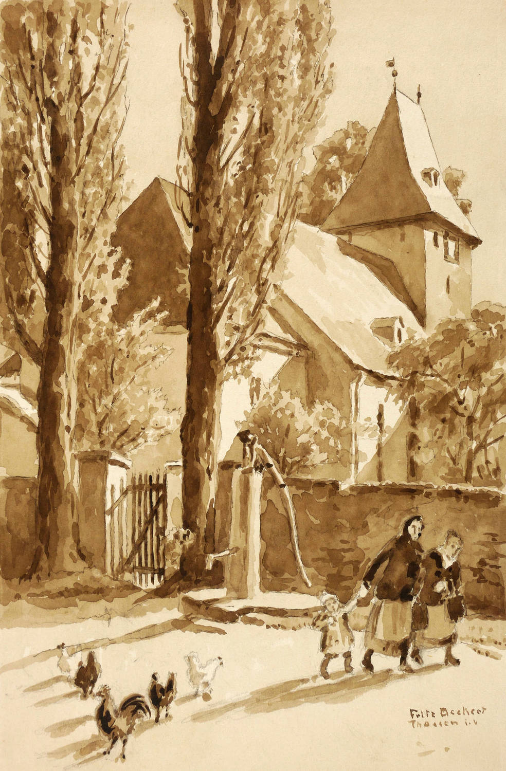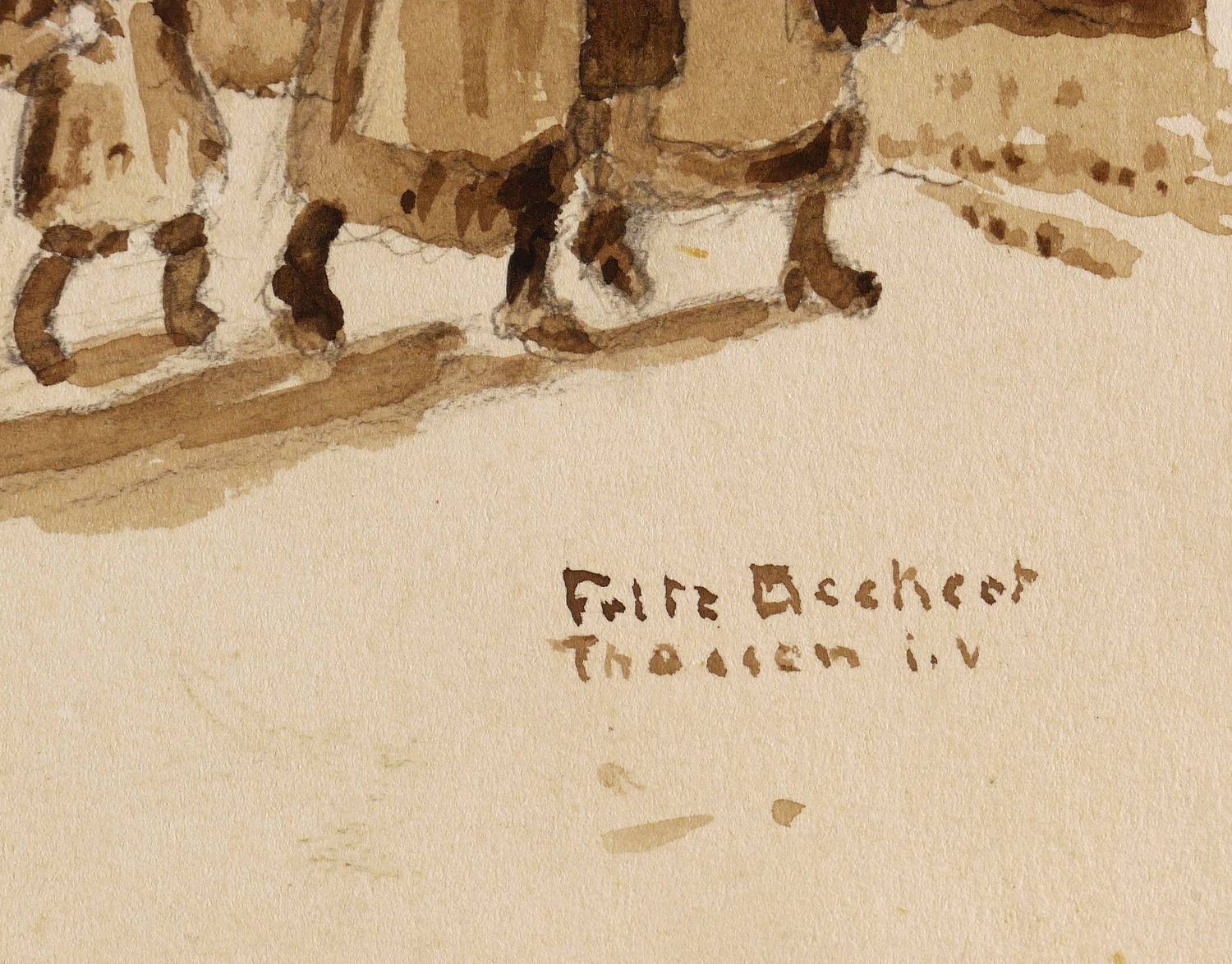 Rechts unten in Tusche signiert und bezeichnet: ″Fritz Beckert / Thossen i.V.″. Verso in Bleistift Werk-Nr.: ″III 4,15″. – Sehr guter Zustand.