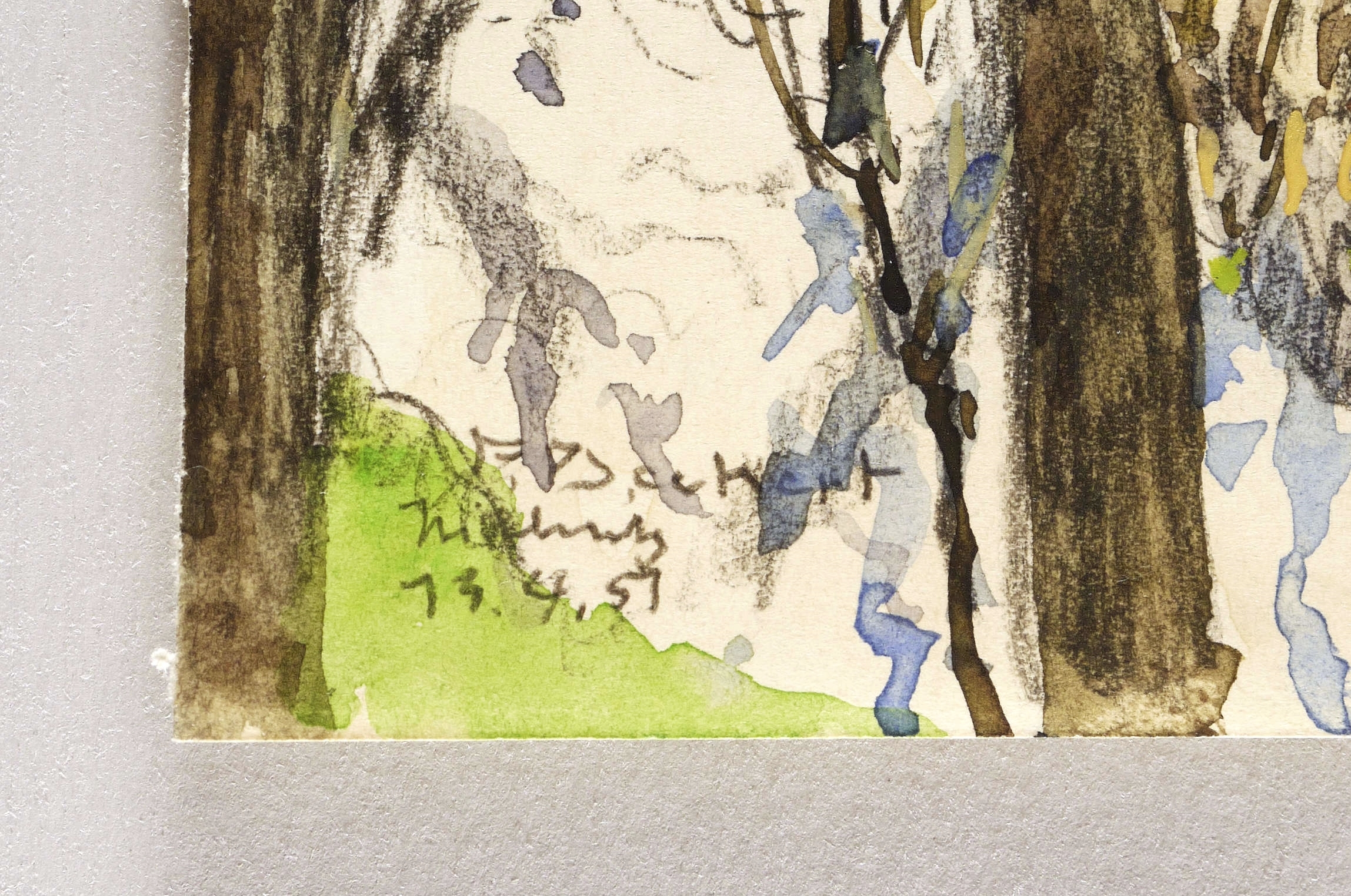 1951. Aquarell, über schwarzer Kreide, auf leichtem Velin. – Originale Künstlergrafik, von Fritz Beckert. – Unikat. – 24,6 x 15,5 cm (Darstellung / Blatt).