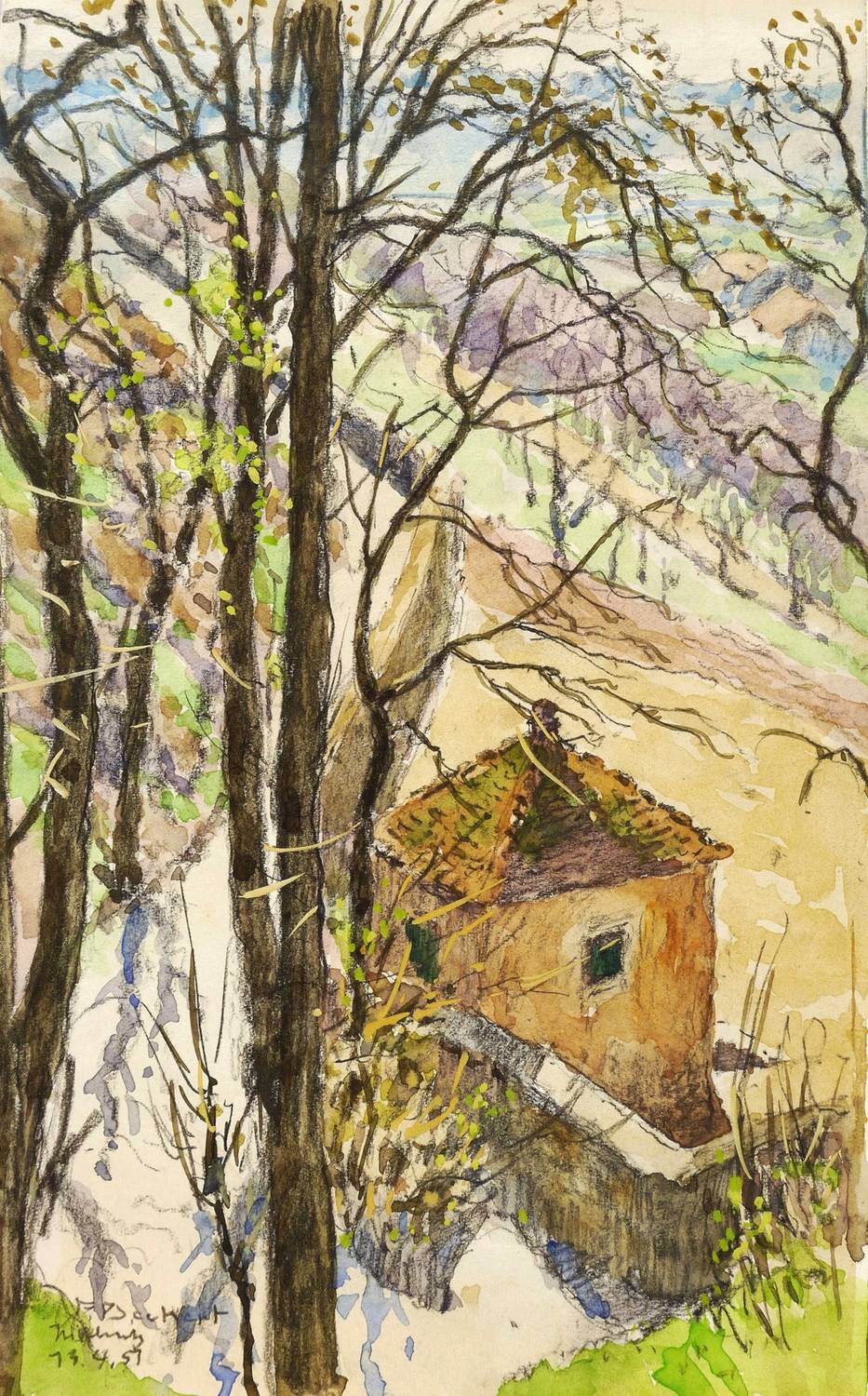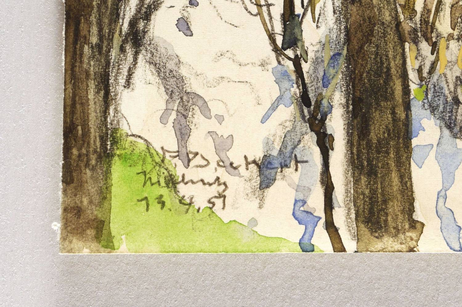 Links unten in schwarzer Kreide signiert: ″F. Beckert″. Darunter bezeichnet und datiert: ″Nischwitz / 19.4.51″. – Ohne Tadel. Hervorragender Zustand.