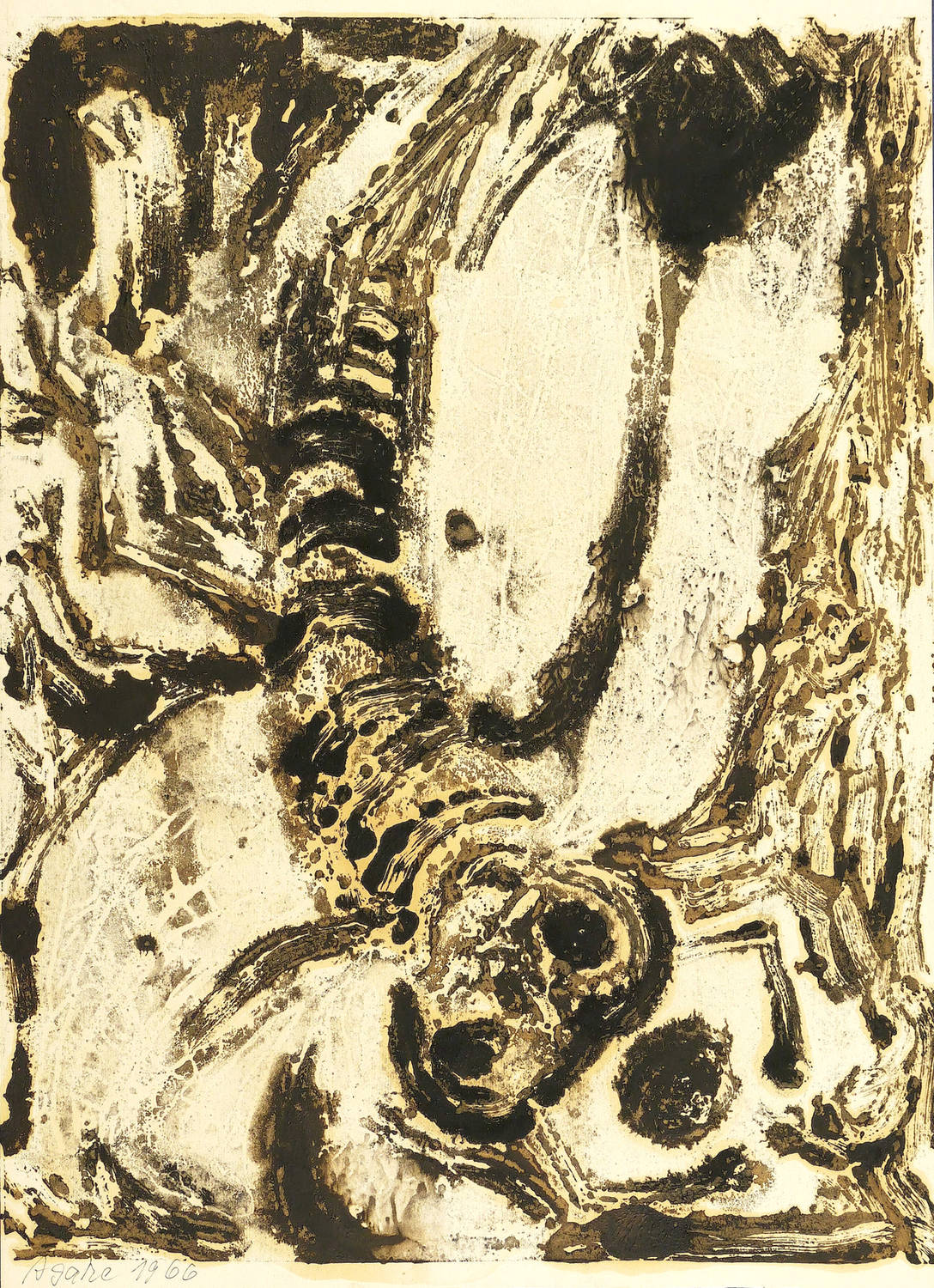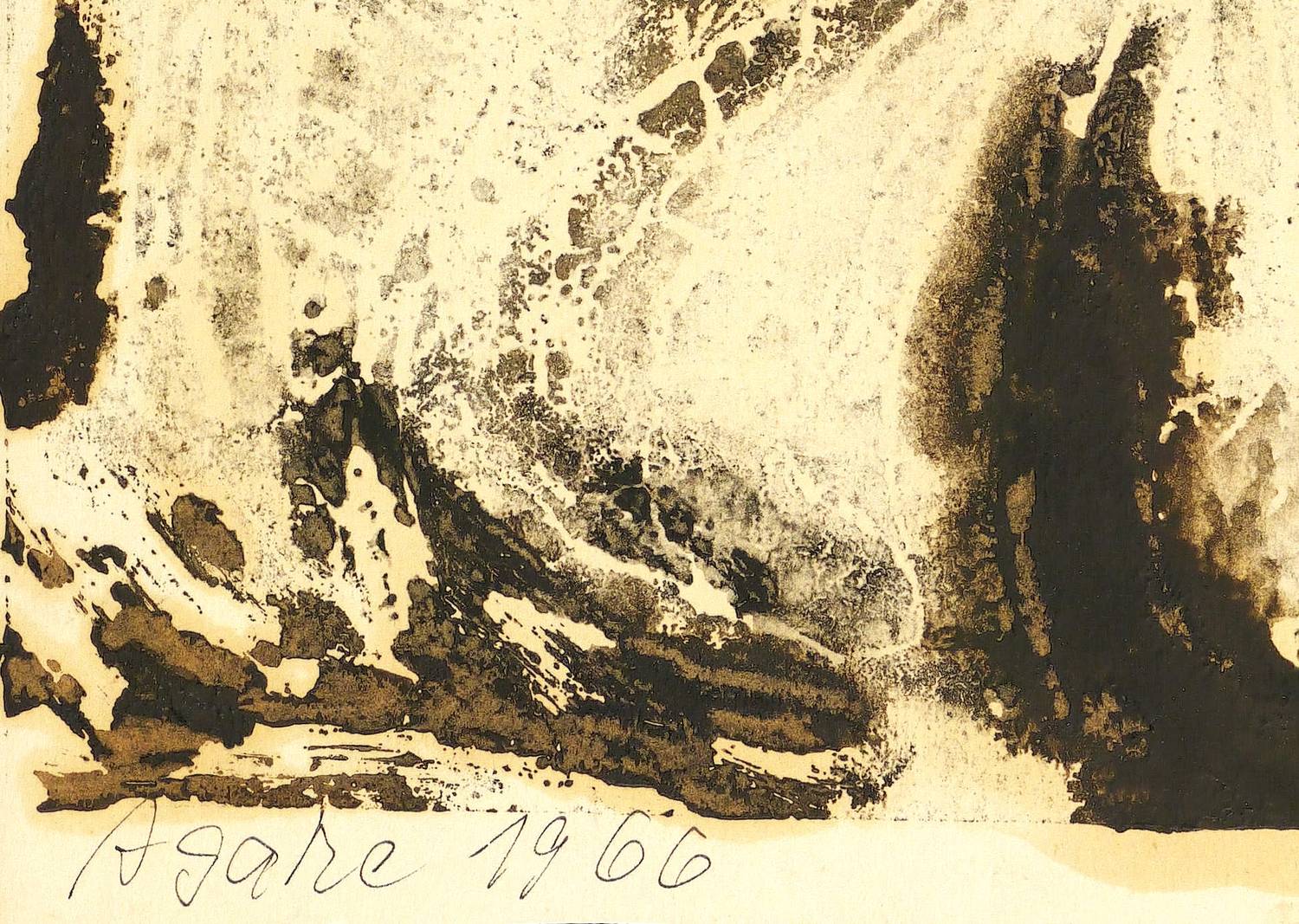 1966. Farbmonotypie, in Grau & Schwarz, auf Papier. – Originale Künstlergrafik, von Agathe Böttcher. – Unikat. – 39,5 x 29,8 cm (Darstellung), 42 x 30 cm (Blatt).