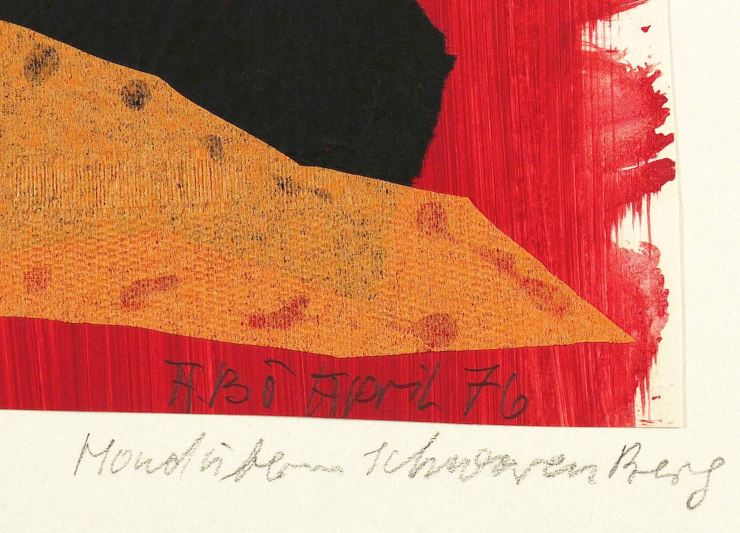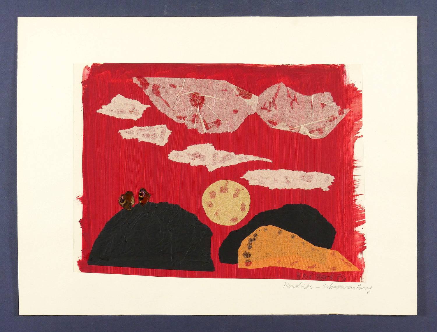 1976. Collage / Papier- & Materialcollage, Gouache, diverse Papiere & Schmetterlingsflügel, auf Karton. – Originale Künstlergrafik, von Agathe Böttcher. – Unikat. – 26,0 x 35,5 cm (Darstellung / Blatt), 36 x 48 cm (Trägerblatt).