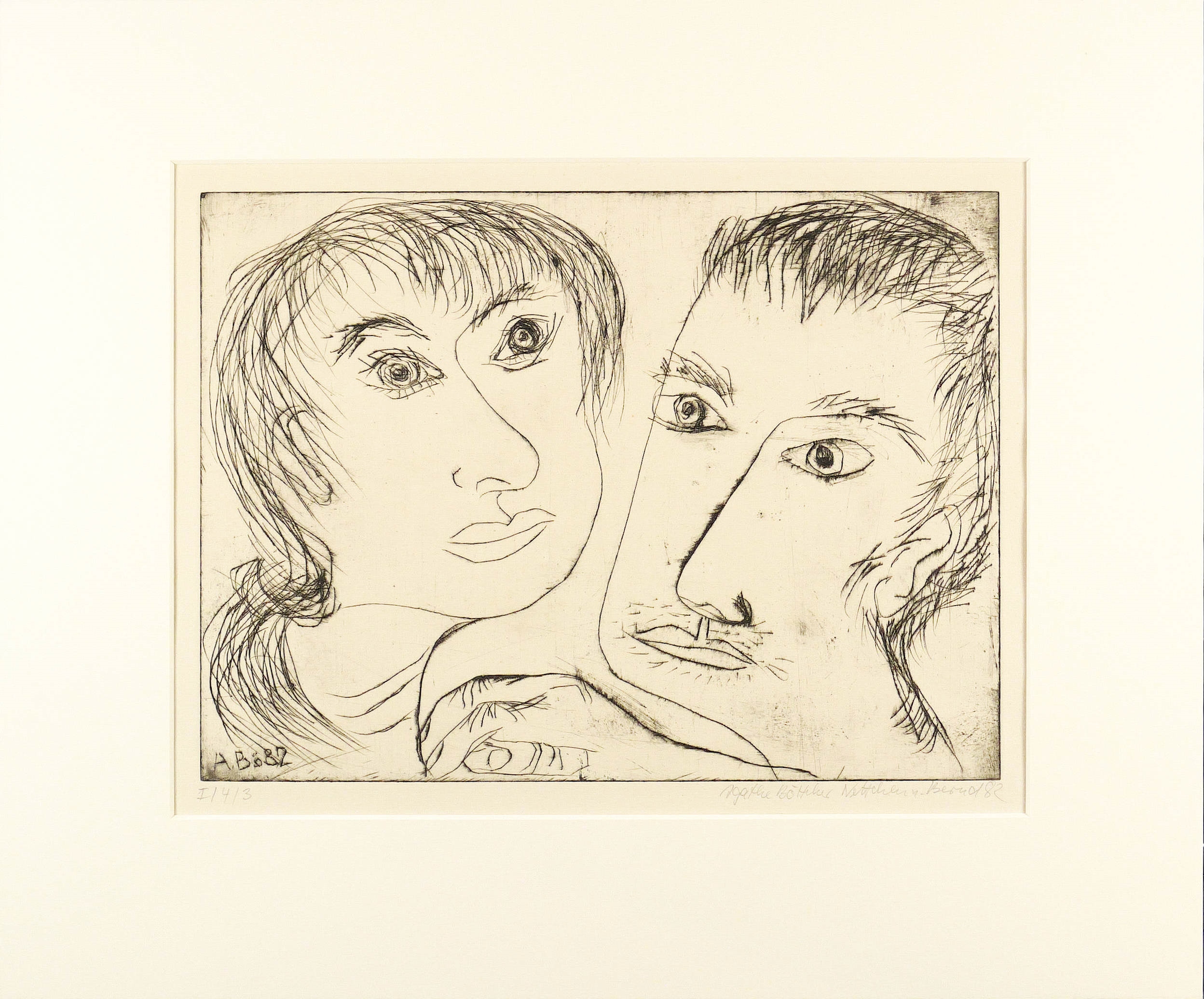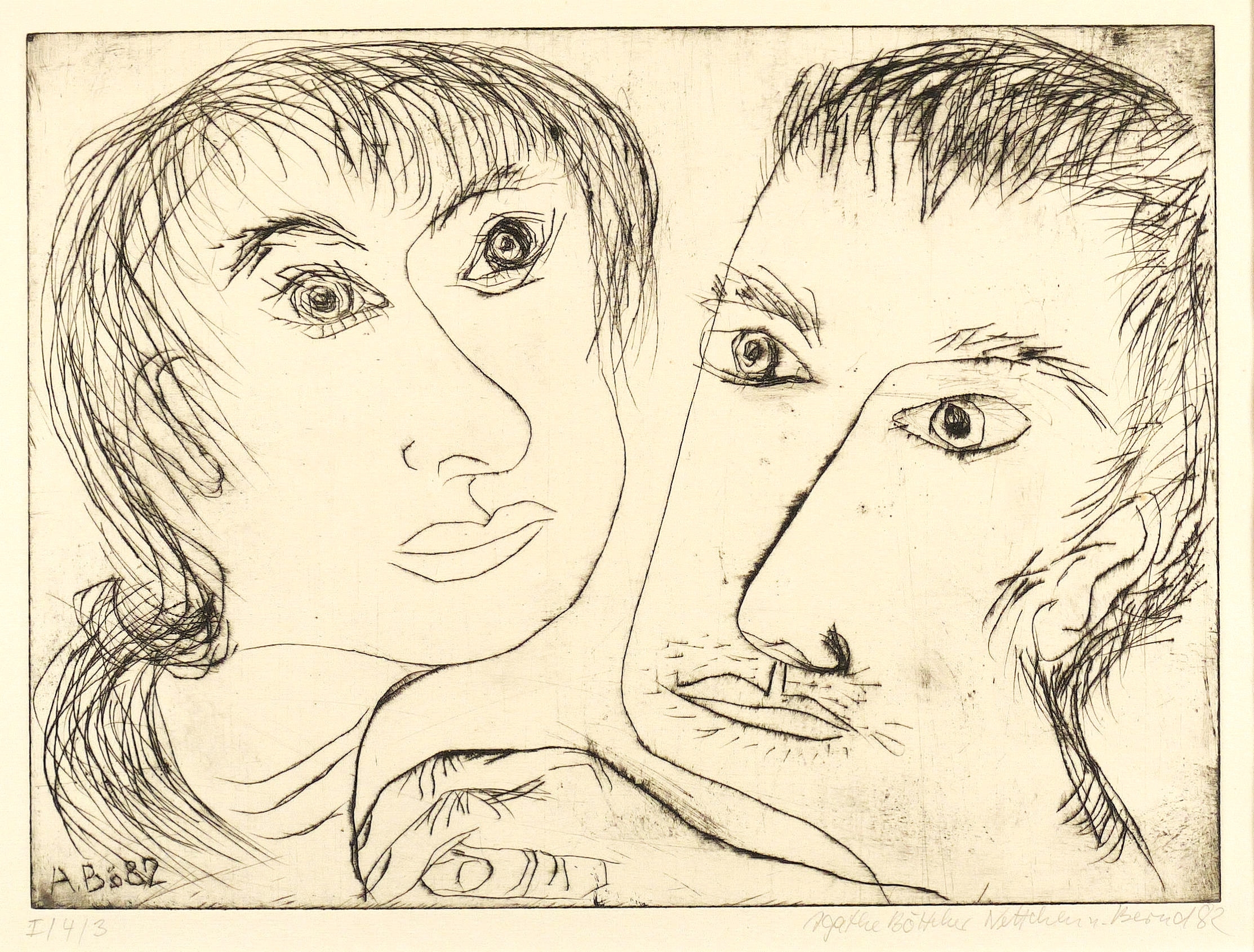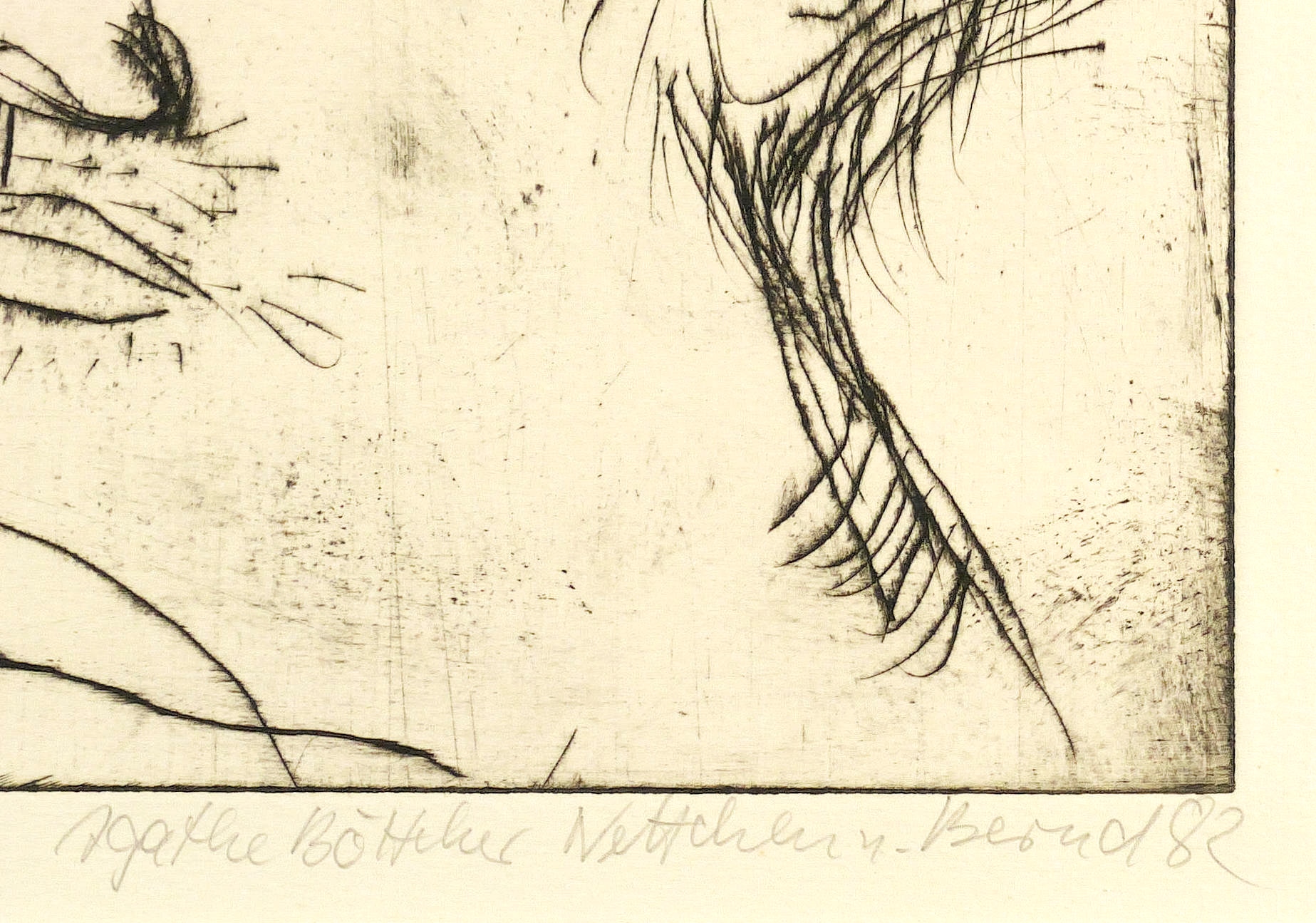 1982. Radierung / Kaltnadelradierung, in Schwarz, auf Hahnemühle. – Originale Künstlergrafik, von Agathe Böttcher. – Auflage Exemplar Nr. 3/4. – 29,2 x 39,8 cm (Darstellung / Platte), 38 x 50 cm (Blatt), 50 x 60 cm (Passepartout).