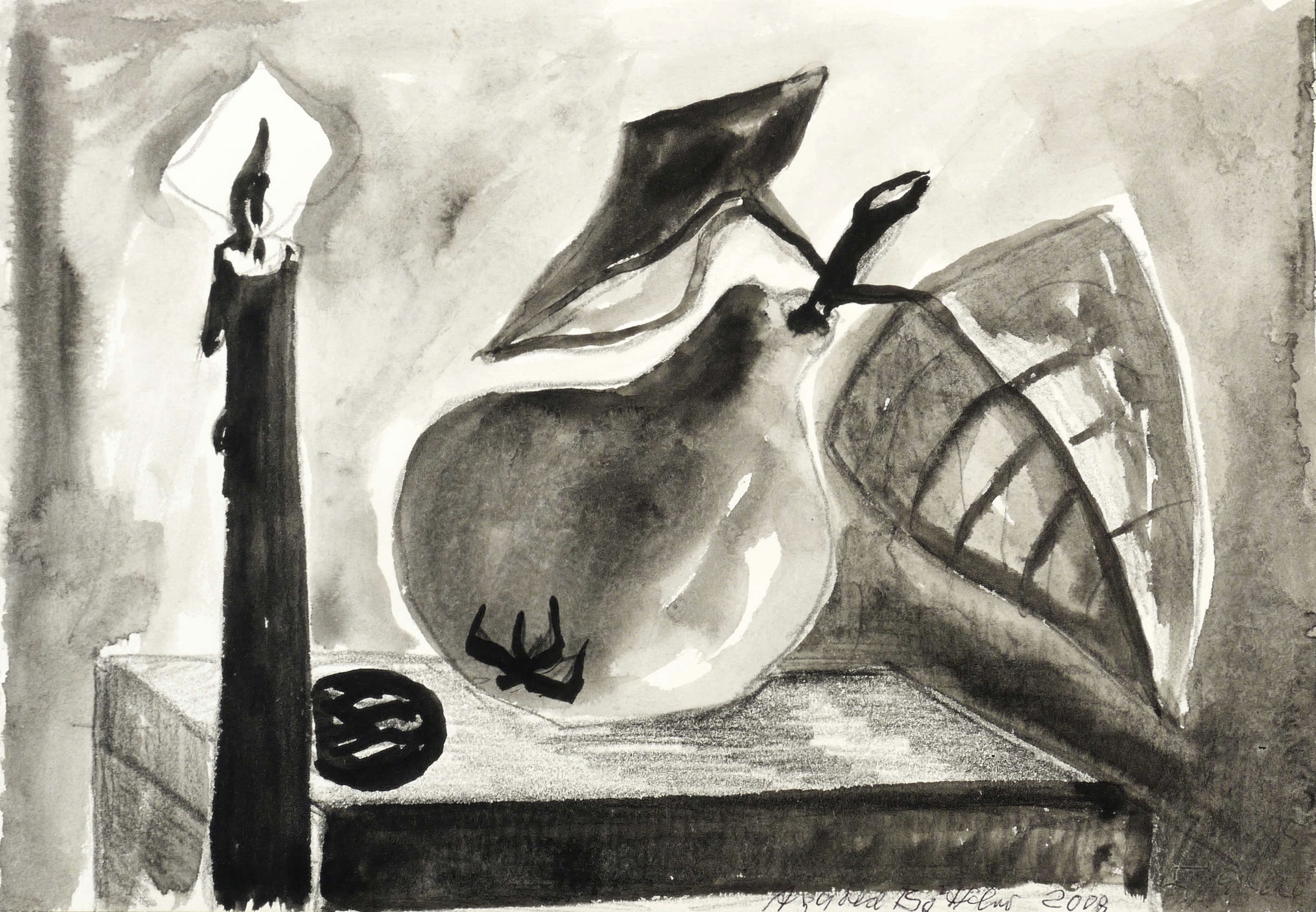 Böttcher, Agathe. – „Stillleben mit Kerze und Birne”.