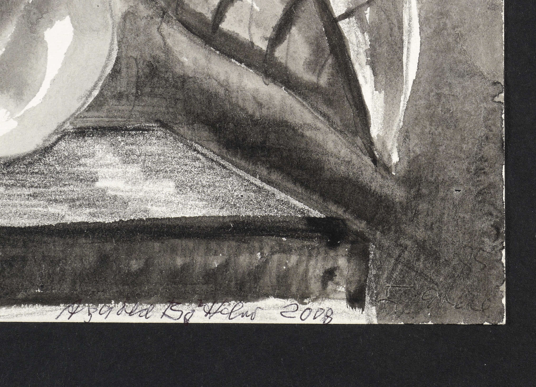 2008. Zeichnung / Pinselzeichnung, in schwarzer Tusche, über Graphit, auf Papier. – Originale Künstlergrafik, von Agathe Böttcher. – Unikat. – 20,7 x 29,8 cm (Darstellung / Blatt), 30 x 42 cm (Trägerblatt).