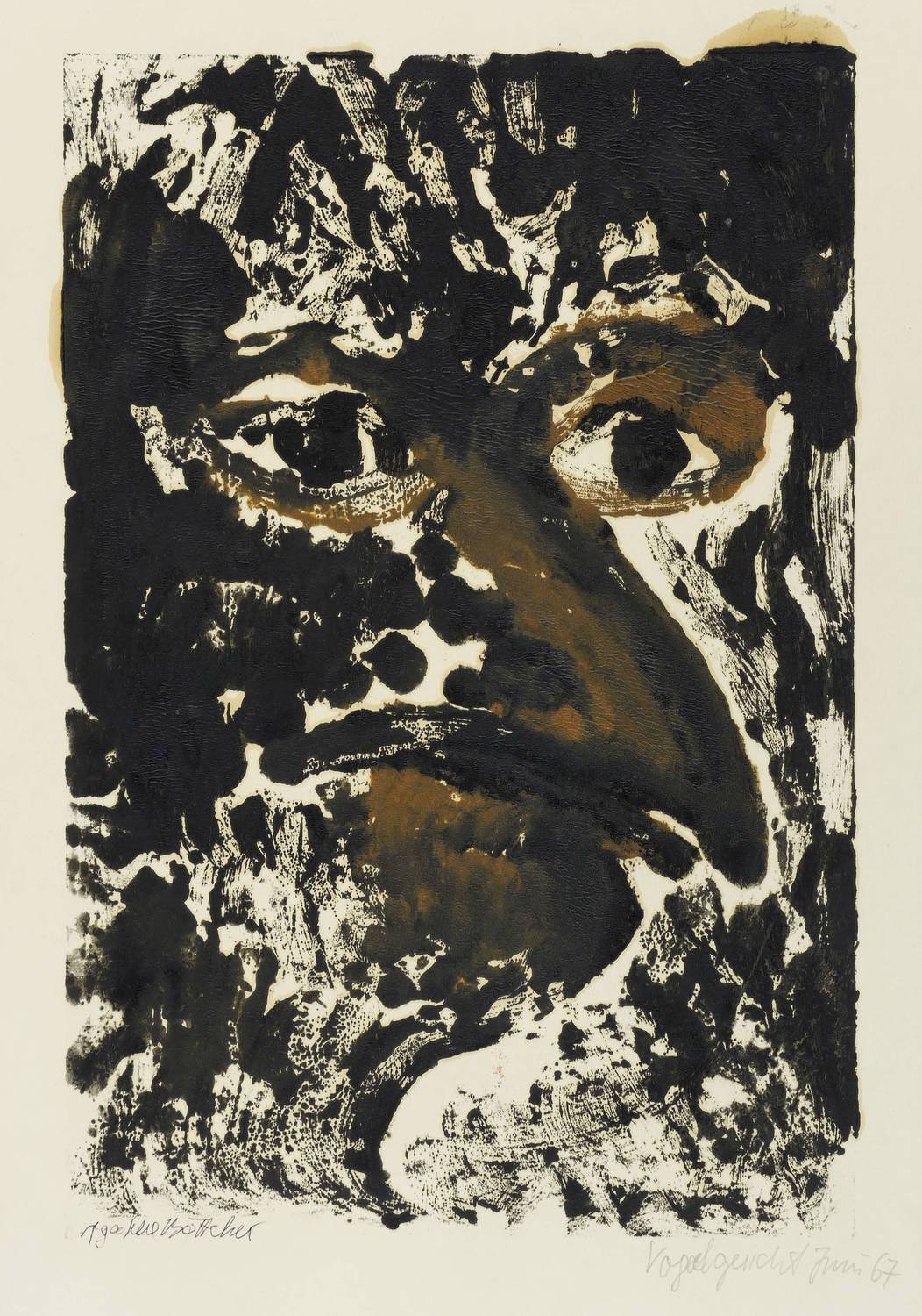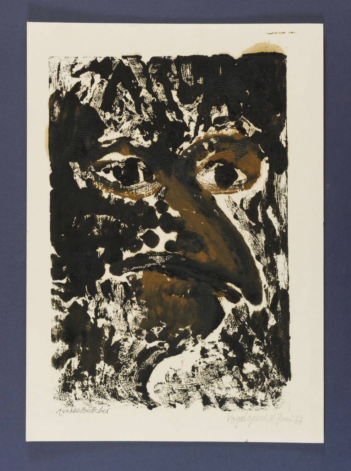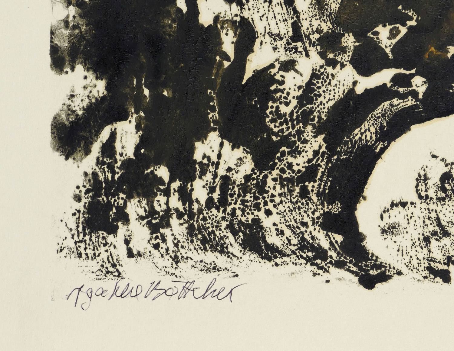 1967. Farbmonotypie, in Schwarz & Braun, auf Maschinenpapier. – Originale Künstlergrafik, von Agathe Böttcher. – Unikat. – 36,0 x 24,0 cm (Darstellung), 42 x 30 cm (Blatt).