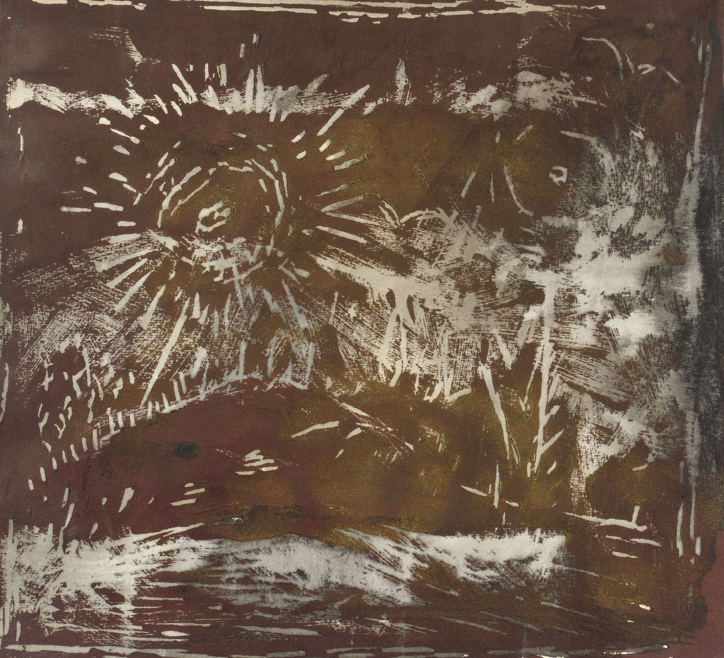1960-1970. Zeichnung / Schabtechnik, in Schwarzbraun mit Goldpigment, auf Karton. – Originale Künstlergrafik, von Agathe Böttcher. – Unikat. – 35,8 x 38,5 cm (Darstellung), 36,5 x 41,5 cm (Blatt).