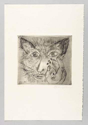 1980. Radierung / Kaltnadel, mit Plattenton, in Schwarz, auf Hahnemühle-Bütten. – Originale Künstlergrafik, von Agathe Böttcher. – Auflage Exemplar Nr. 1/4. – 16,3 x 17,9 cm (Darstellung / Platte), 38 x 26 cm (Blatt).