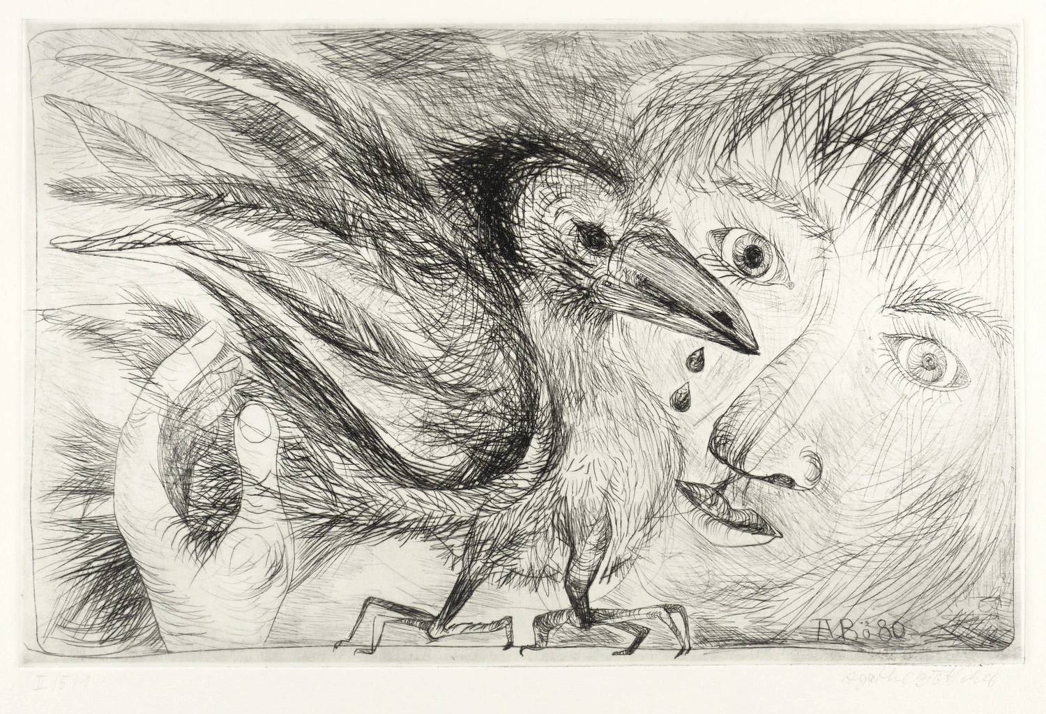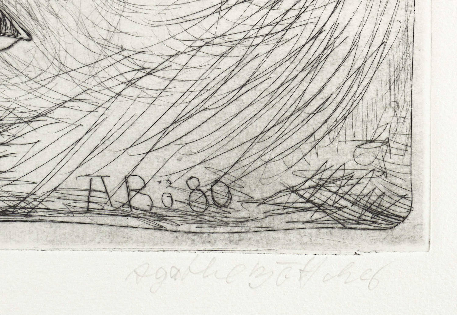 1980. Radierung / Strichätzung & Kaltnadel, mit leichtem Plattenton, in Schwarz, auf Hahnemühle-Bütten. – Originale Künstlergrafik, von Agathe Böttcher. – Auflage Exemplar Nr. 1/5. – 32,0 x 49,4 cm (Darstellung / Platte), 48 x 65 cm (Blatt).