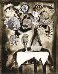 Böttcher, Agathe -  -  - Tisch mit großer Vase und Glas
