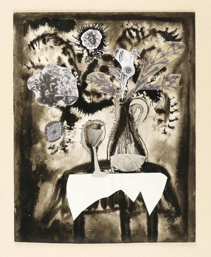Böttcher, Agathe. – „Tisch mit großer Vase und Glas”.