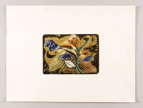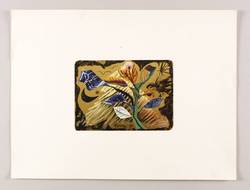 1991. Collage / Papier- & Materialcollage, Monotypie, Dekorpapiere & Tusche, auf Folienkarton. – Originale Künstlergrafik, von Agathe Böttcher. – Unikat. – 15,1 x 21,0 cm (Darstellung / Blatt), 36 x 48 cm (Trägerkarton).