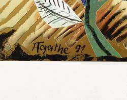 Unten in schwarzer Tusche signiert und datiert: ″Agathe 91″. – Von Künstlerin auf Trägerkarton montiert. Sehr guter Zustand.