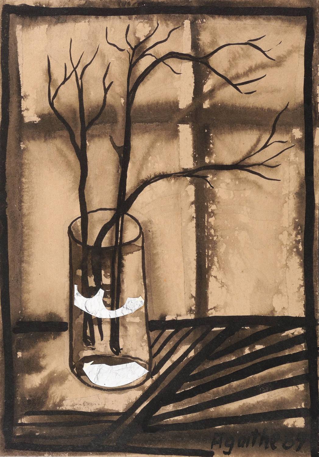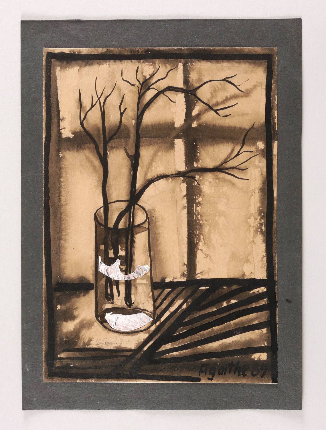 Rechts unten in schwarzer Tusche signiert und datiert: ″Agathe 89″. – Original auf schwarzem Trägerkarton montiert. Sehr guter Zustand.